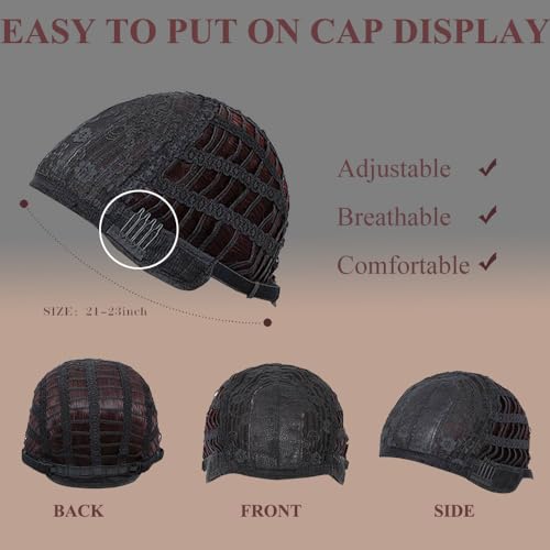 - 【Fine interior design】: Average size 22.5in cap size, 2 durable and adjustable straps in the back, fit most people's head, easy to put on. Comfortable and breathable mesh cap make you forget you're wearing a wig