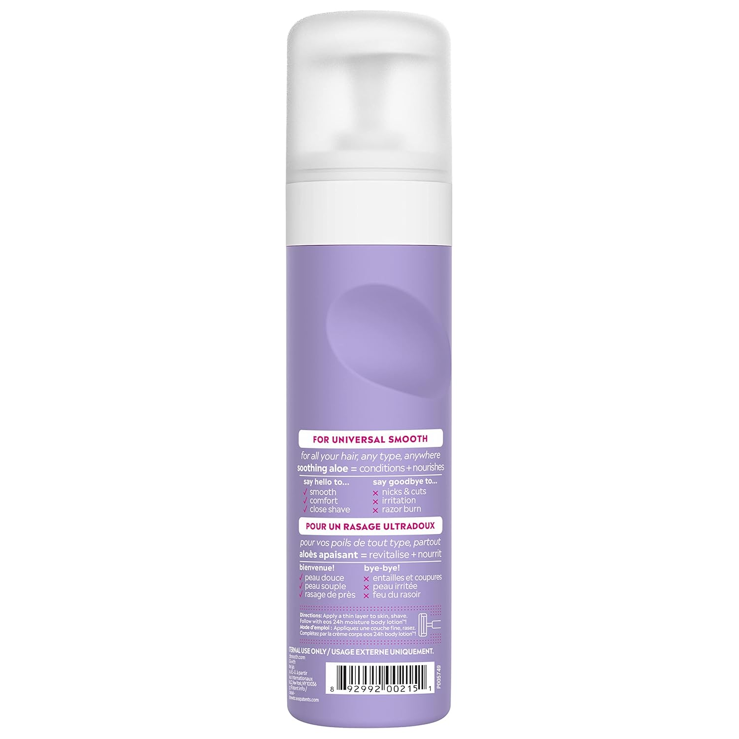 Clean lavender, warm sandalwood, and velvety amber create our relaxing lavender eos shaving cream. Get your softest, smoothest (and closest) shave ever. Our rich, non-foaming shaving cream for women contains instantly moisturizing shea oil + lasting protection shea butter for incredible 24-hr hydration and lasting skin comfort, even for your bikini line. Soothing Aloe conditions + calms for the silky smooth shave your skin deserves. eos shave + in-shower lotion can be rinsed off or left on for awesomely smooth skin. Say hello to: smooth, comfort, wet + dry, protection with eos skin care. Say goodbye to: nicks, cuts, irritation, razor burn. Directions: apply a thin layer to skin, distribute evenly. Shave, touch, smile.