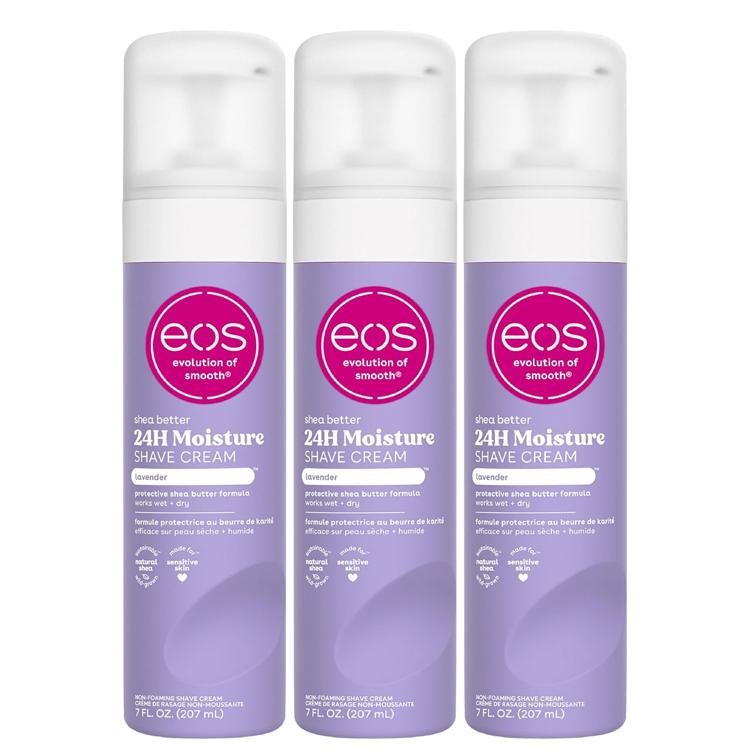 eos Shea Better Shaving Cream- Lavender, Women's Shave Cream, Skin Care, Doubles as an In-Shower Lotion, 24-Hour Hydration, 7 fl oz, 3-Pack