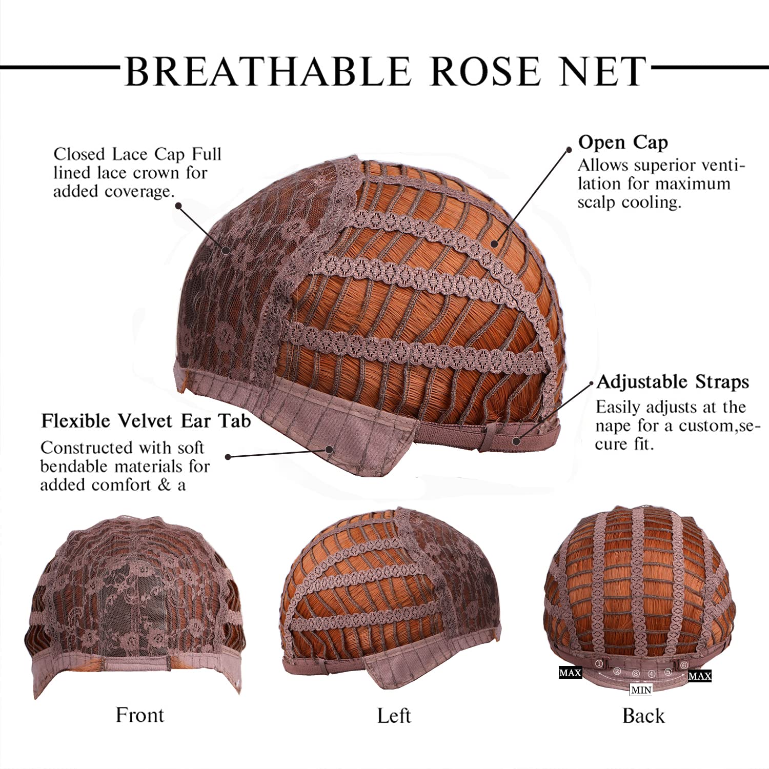 - ❤【Adjustable Wig Cap】- It use breathable rose net within the network which make you feel comfortable when you wear it.Average Cap Size 22.5 Inches.There are two adjustment straps inside the wig, which can be intertwined to a fixed position to suit different head sizes.