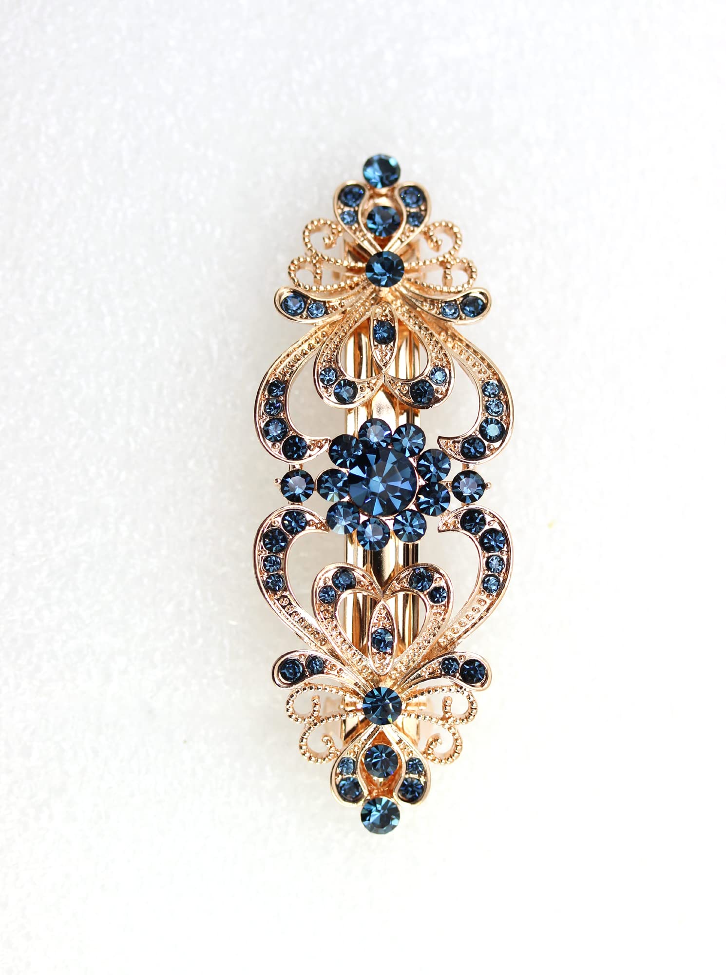 Faship Gorgeous Navy Blue Rhinestone Crystal Hearts And Floral Hair Barrette