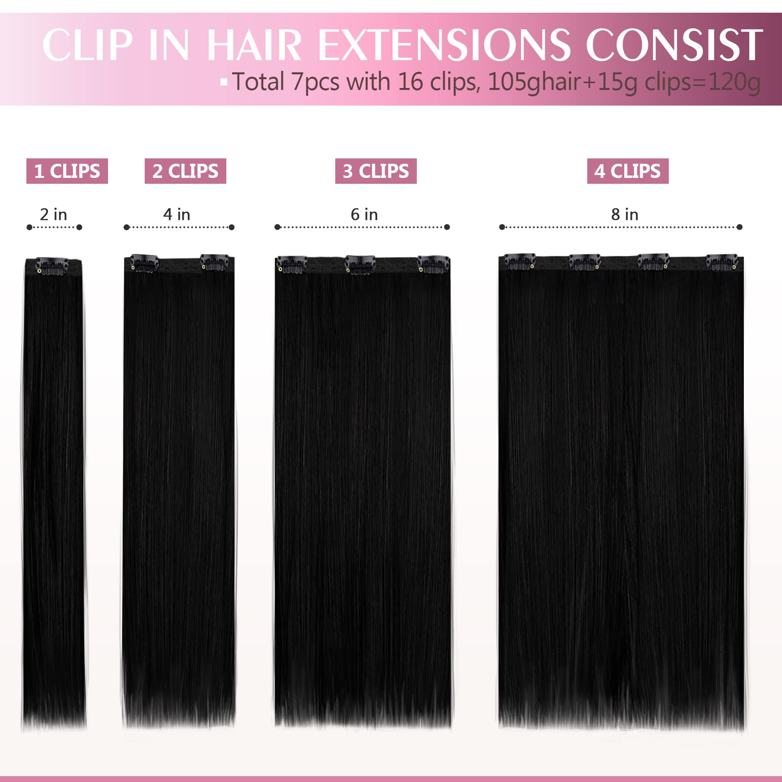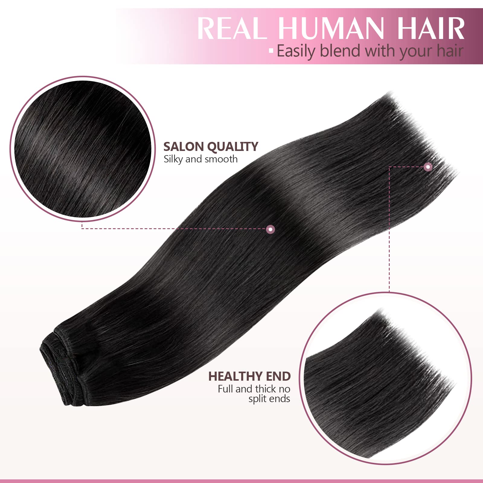 Fimislosion 16" Clip in Real Human Hair Extensions with Double Weft, 7pcs with 16clips,120 Gram(#1B Natural Black)