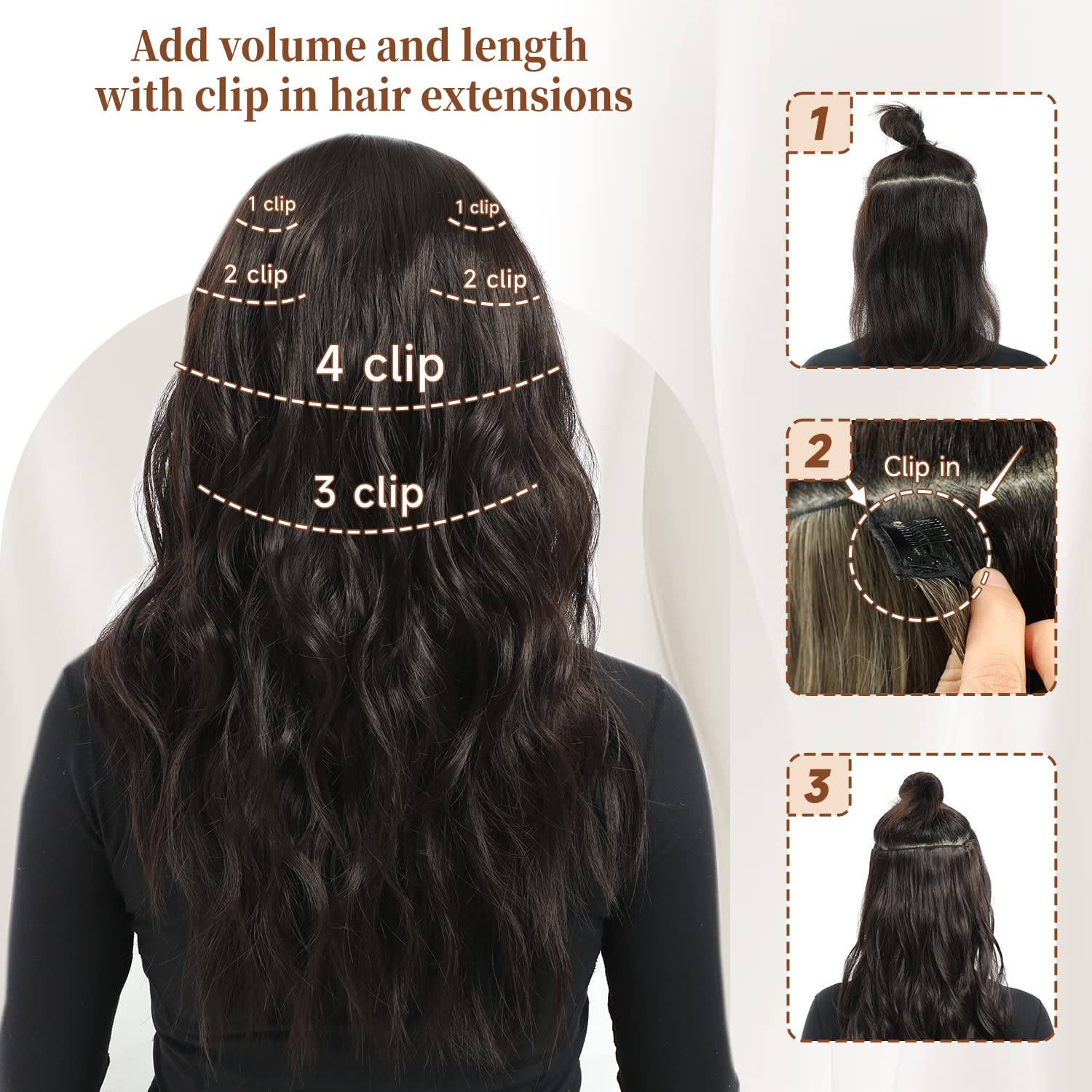 Fliace Clip in Hair Extensions, 6 PCS 1 6 Inch Hair Extensions Clip Ins, Dark Brown Long Wavy Hairpieces(16inch, 6pcs, Dark Brown)