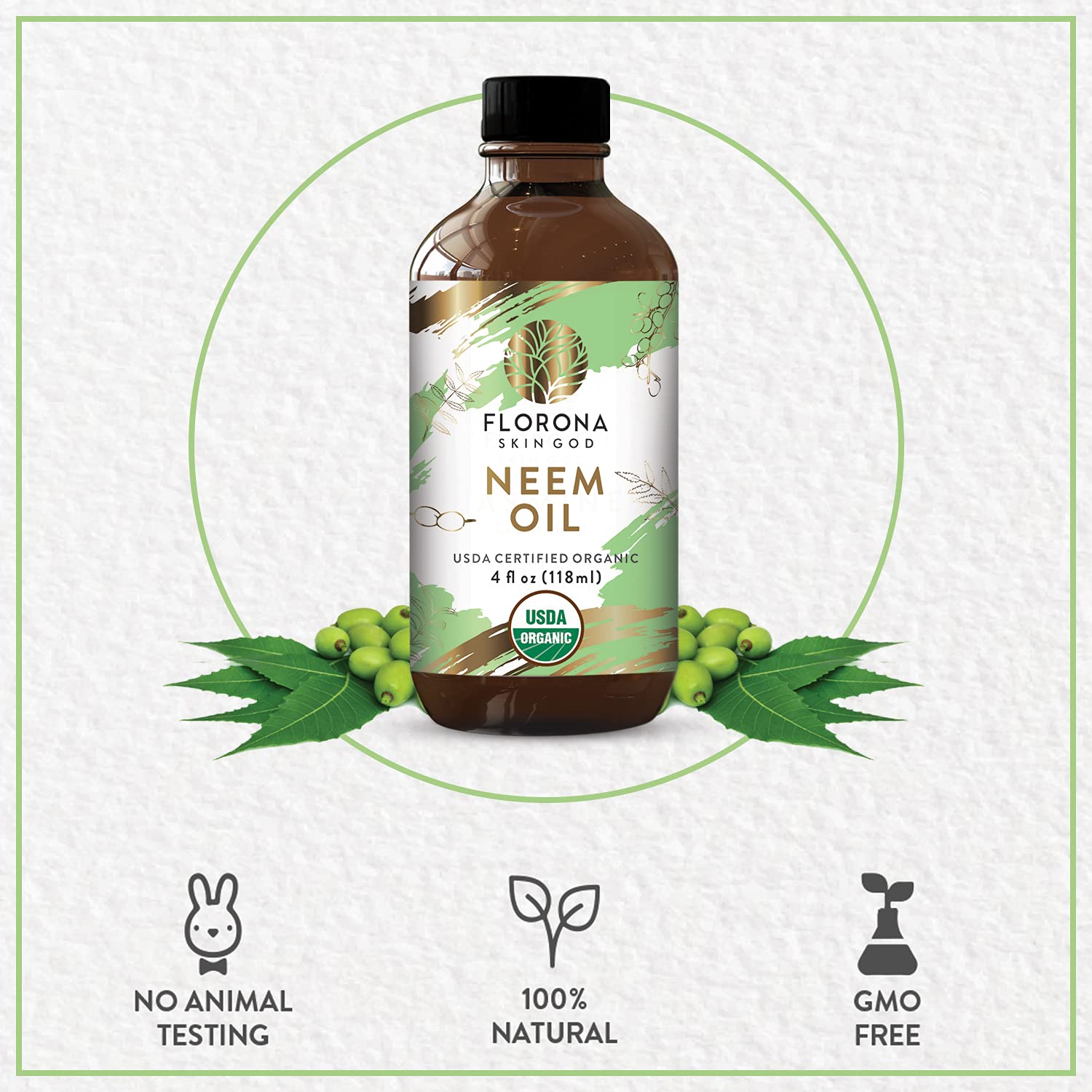 FLORONA Neem Oil USDA Organic - 4 fl oz for Hair Care, Skin Care, Aromatherapy, Soap Making