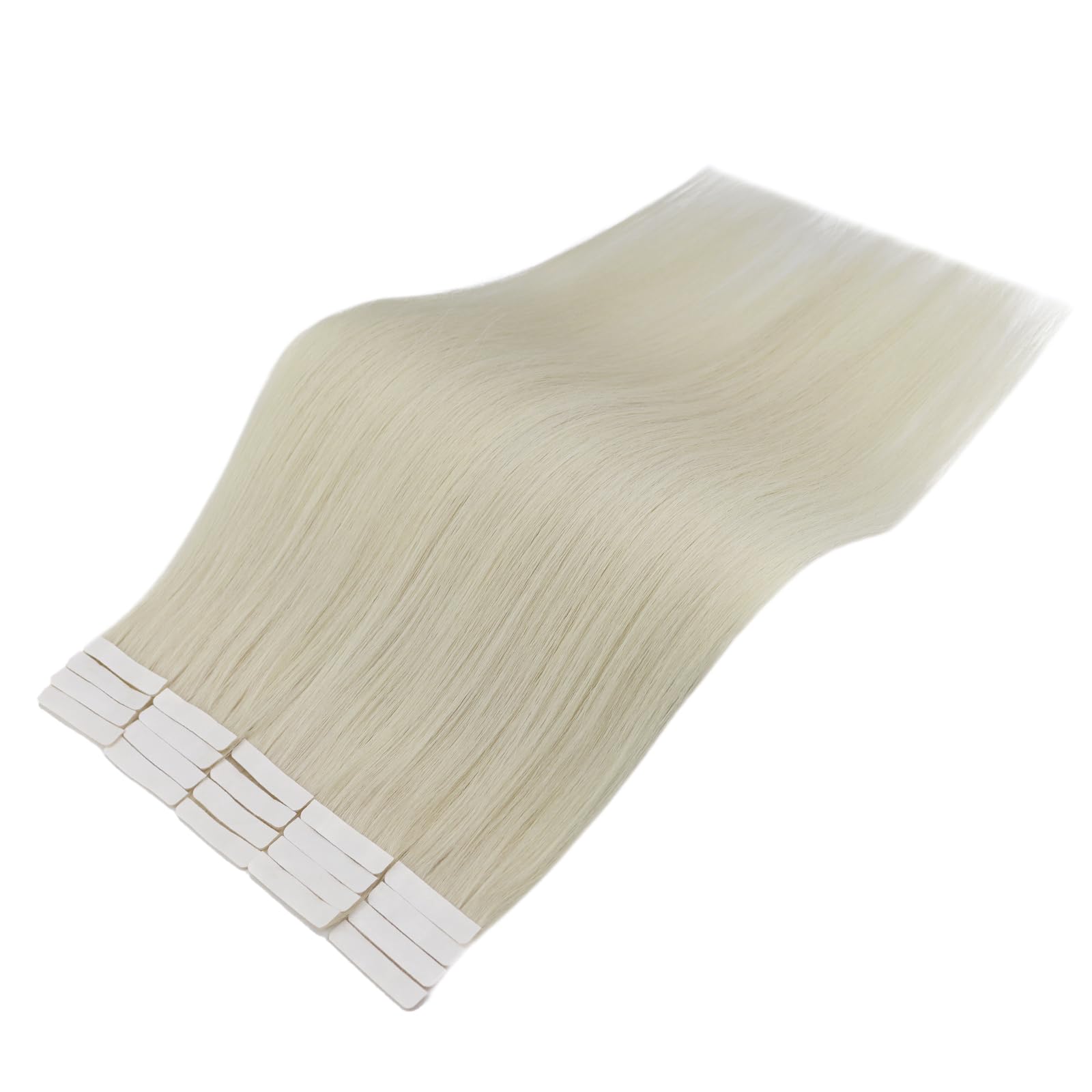 Full Shine Ice Blonde Tape in Extensions Human Hair Virgin Tape in Hair Extensions Real Human Hair Color 1000 Blonde 25 Gram Invisible Tape in Virgin Hair Extensions Straight Hair 10pcs Remy Hair