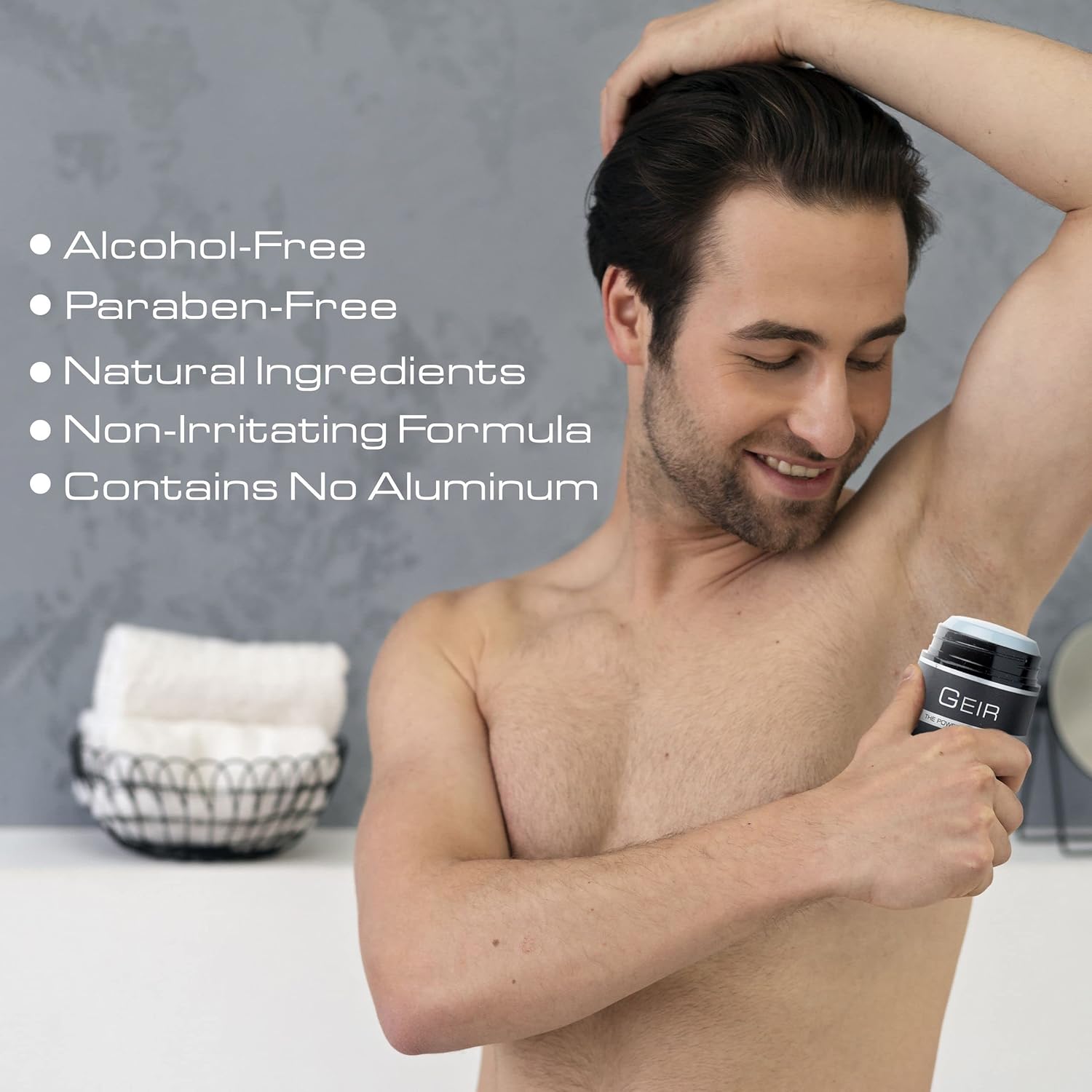 - GENTLE AND SAFE FOR DAILY USE - Made with the highest-quality ingredients, Geir Men Deodorant Stick is a great deodorizing formula to refresh your underarm and prevent sweaty and clogged pores. This underarm deodorant for men won't leave your skin dry, or damaged.