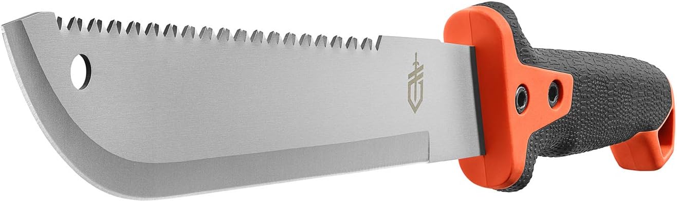 - SURVIVAL GEAR AND EQUIPMENT: Made with corrosion-resistant stainless steel that will stand the test of time, full tang construction for boosted durability, and an ergonomic rubberized handle that rests comfortably in your grip; Ideal for a range of chopping jobs from tall grass to small tree limbs