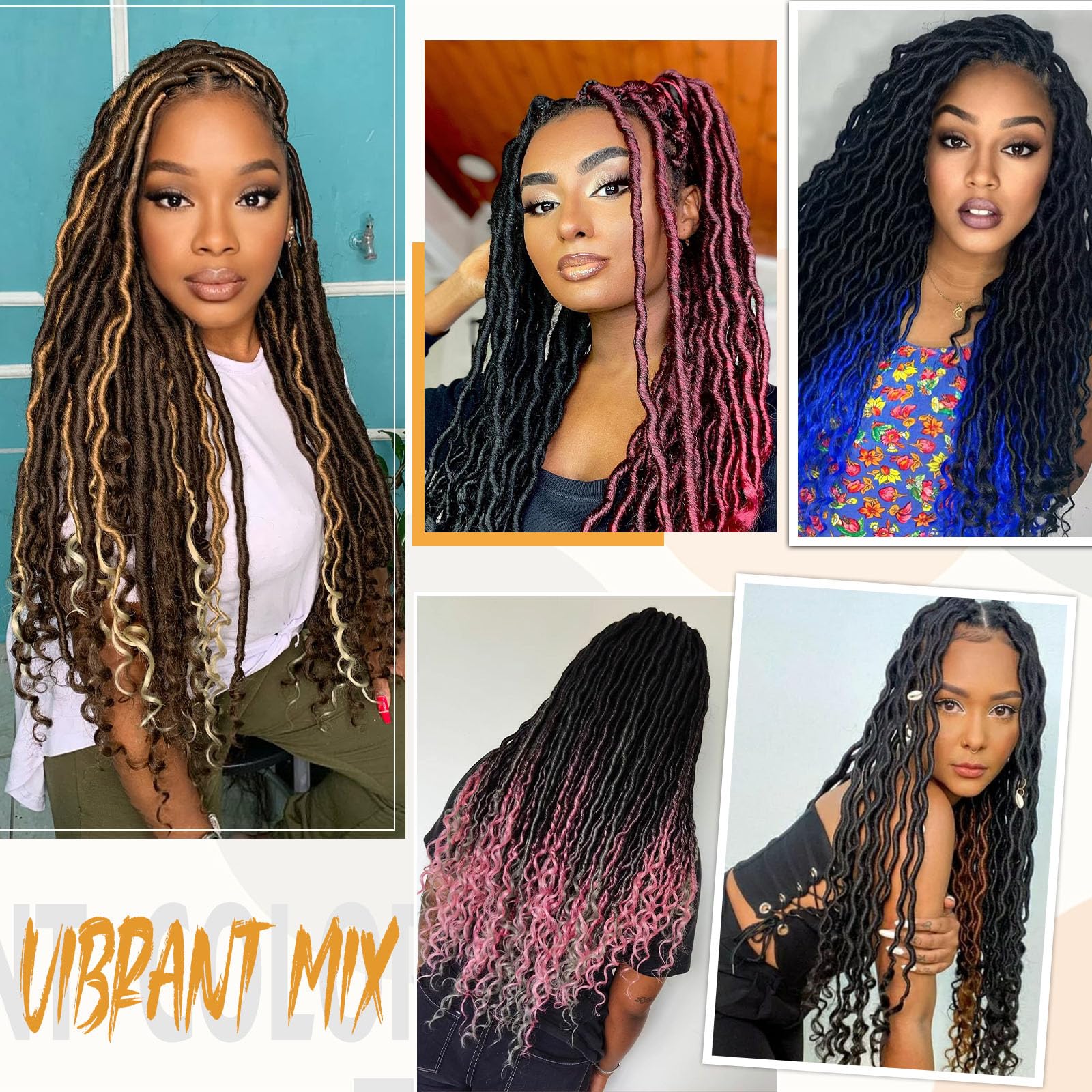 - 【Easy To Install】Goddess Locs Crochet Hair, Pre Looped Crochet Faux Locs With Curly Ends, Noble, Elegant, Adjustable Loops, Easier To Pull Faux Locs Strands Through, Low Maintenance, Quick To Install, Save You Much Time And Money, Beginners Friendly.