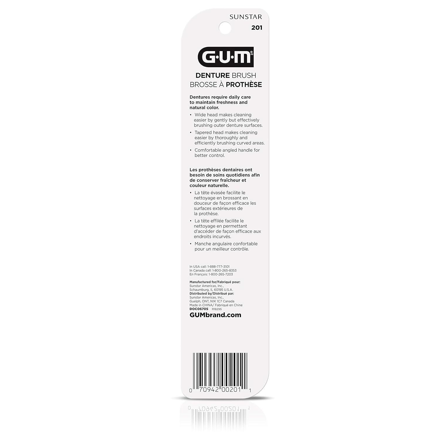 - DENTIST RECOMMENDED: Dental professionals recommend the GUM denture toothbrush for the daily care of all removable dentures and acrylic retainers.* *DOF-0044