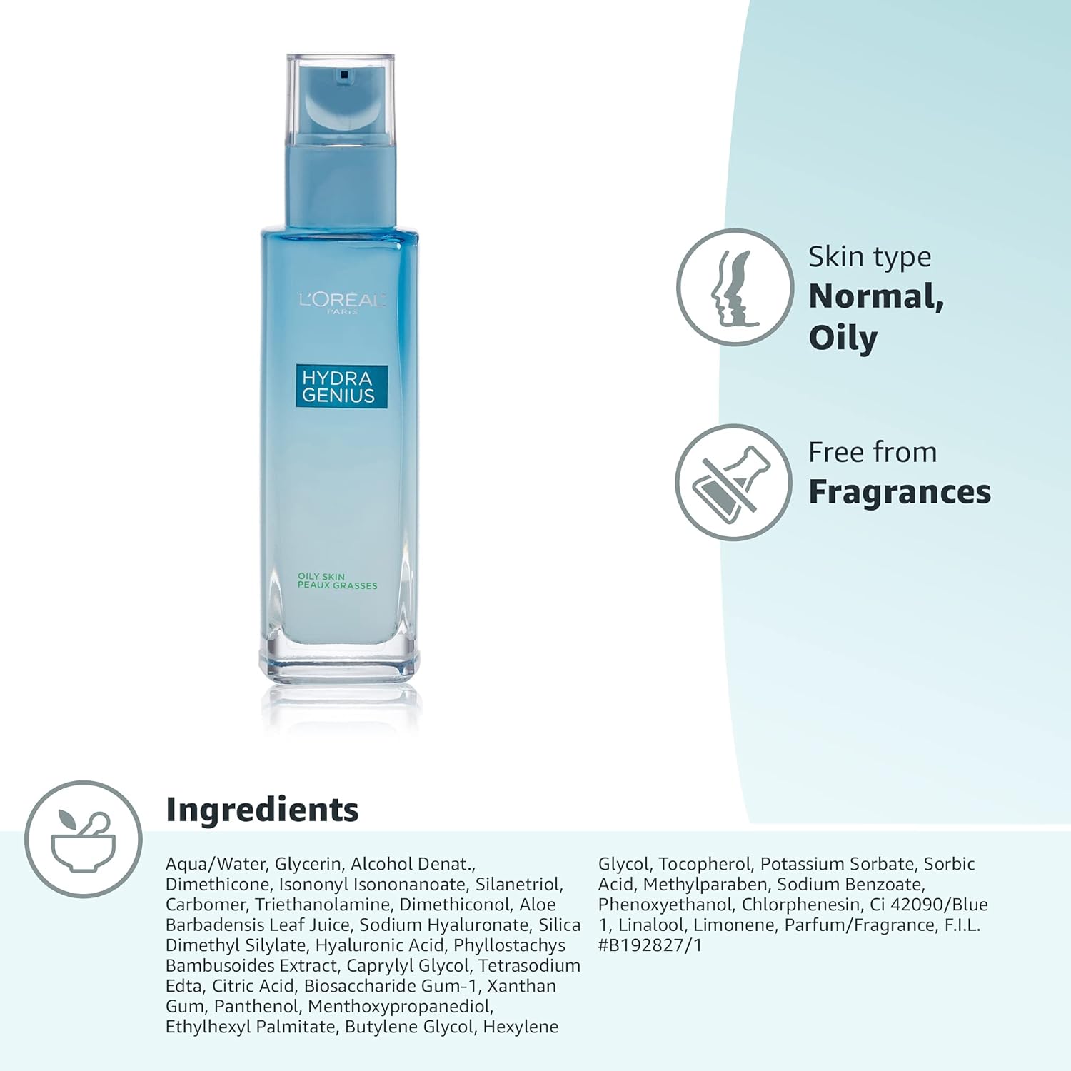 - Hydra Genius: A unique line of daily liquid care moisturizers, formulated with aloe water and 3 types of Hyaluronic Acid for quick absorption and 72H moisture-lock power