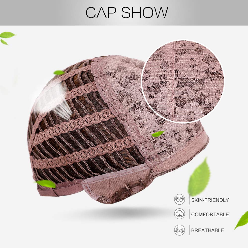 - Wig Cap: average cap size circumference 22.5 inches with 2 adjustable straps inside the cap, which can be linked to a fixed position to adjust the size less or more for about 1-1.5 inches, will fit different head sizes