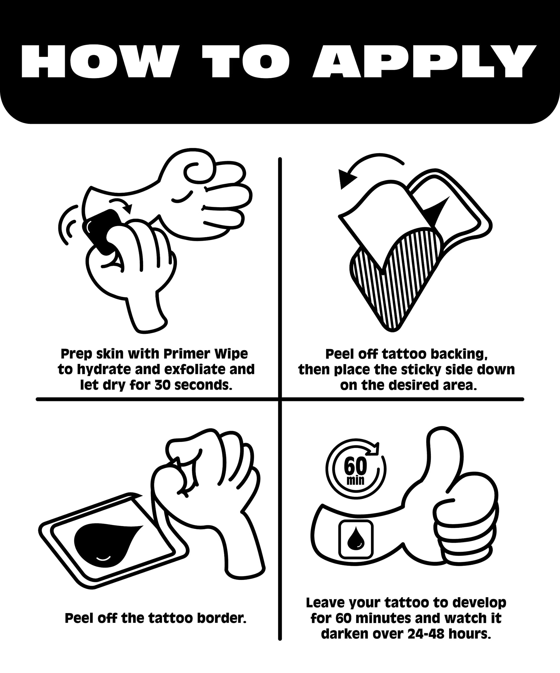 - Easy to Apply: Easily apply your Inkbox tattoo in 1-2 minutes and then chill for 1 hour. Take this time to read, sing, stream, meditate... you do you. Keep in mind, your tattoo will darken over the course of 24-48 hours.