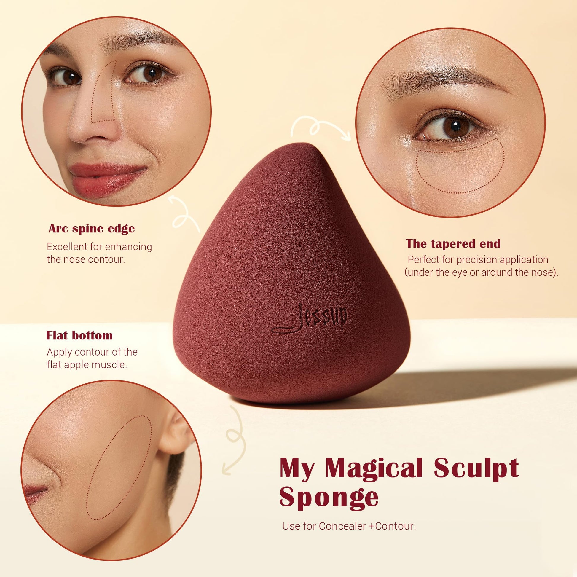 - My Magical Sculpt Sponge: Jessup exclusive design makeup sponge perfect for concealer and contouring. Its arc spine edge excellent for enhancing nose contouring, while the tapered end allows for precise application under the eye and around the nose. The flat bottom is ideal for applying contour to the flat apple muscle, making it a must-have beauty sponge for achieving trendy makeup looks.