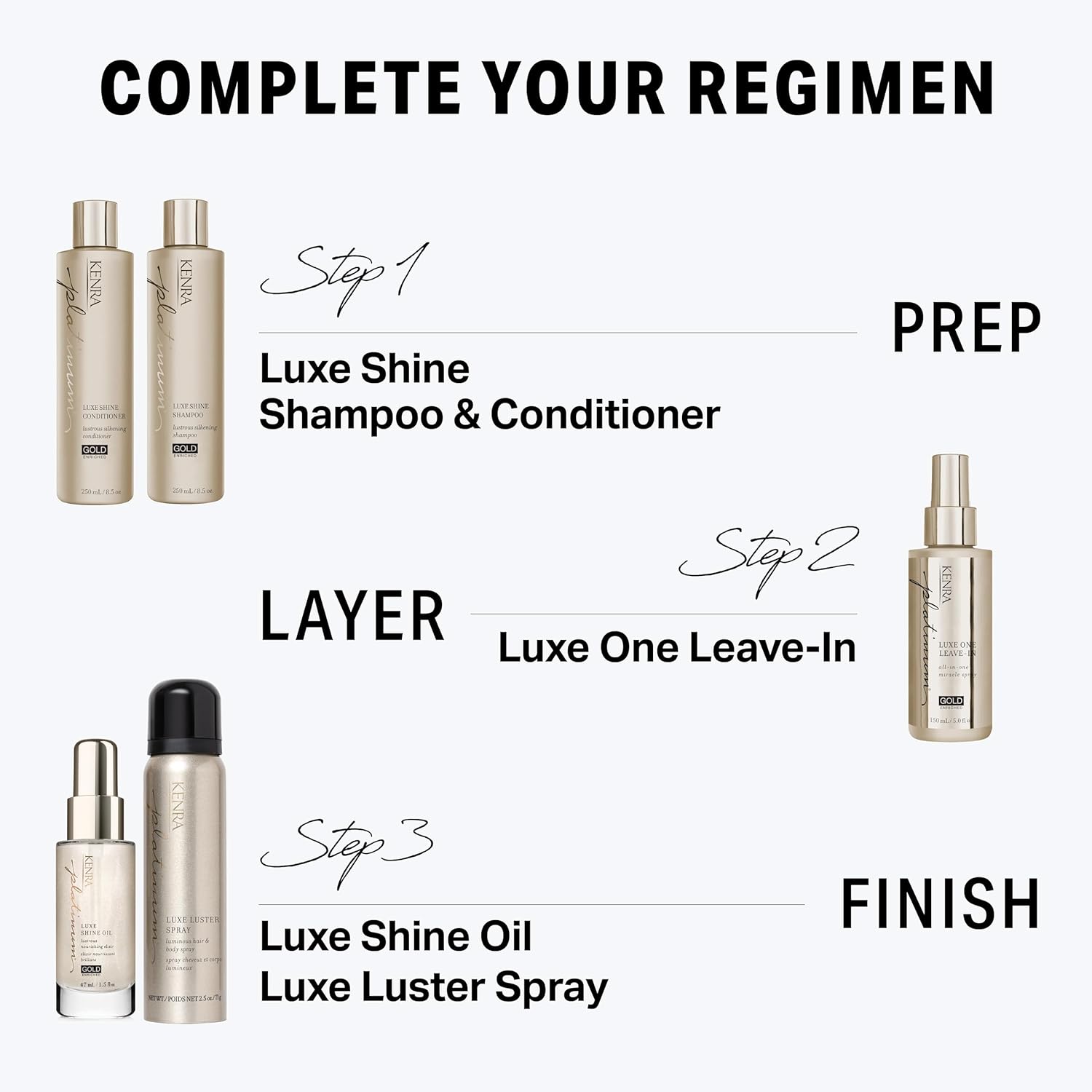 | LUXE SHINE OIL | LUXE ONE LEAVE-IN | LUXE SHINE SHAMPOO | LUXE SHINE CONDITIONER | |