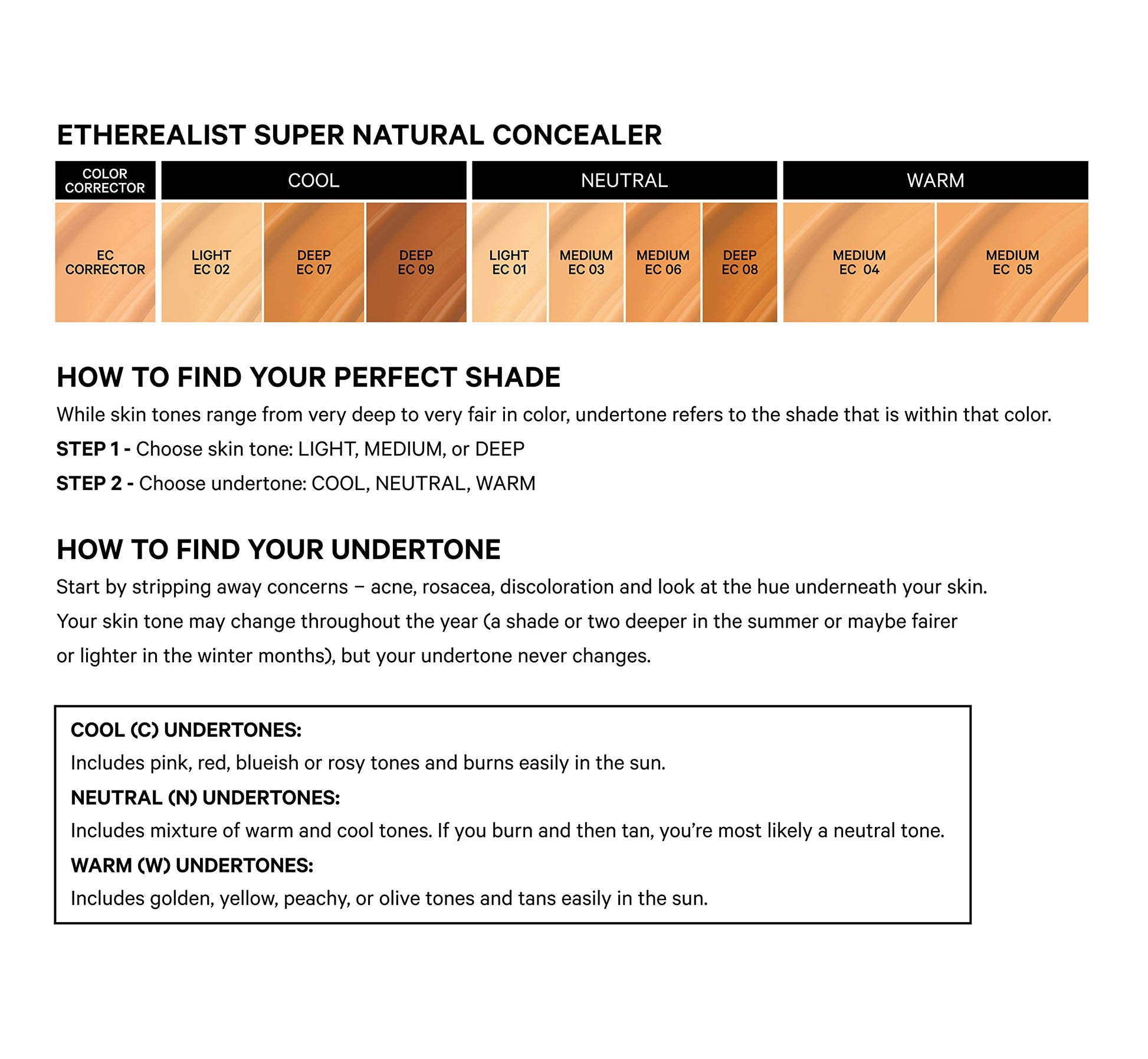 - Dermatologist-tested and fragrance-free. Our iconic and best selling concealer provides a natural satin finish and melts weightlessly onto the skin. The universal corrector shade is designed with a peach undertone to act as a color corrector to diminish the appearance of dark-eye shadows. Layer or mix with other Etherealist Super Natural Concealer shades or wear alone.