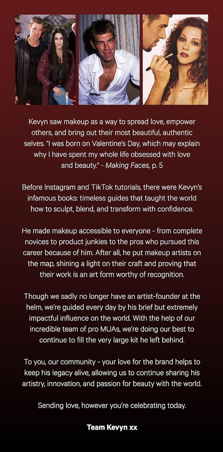 - Kevyn Aucoin Beauty is a brand that encompasses approachability, artistry, empowerment and celebrates originality. It's unapologetic, brave and rather quite fearless. Kevyn himself believed that every woman is beautiful within, and makeup was simply his tool for helping her discover that beauty. He was a man and an artist decades ahead of his time, which has paved the way for innovative, award-winning products, high-performance formulas and textures. His luxurious textures and expansive shade ranges have had a global, broad appeal for over 20 years, when most brands had a limited shade range. He was a true industry pioneer who championed inclusivity, originality, empowerment and education, which you will see carried over today in the brand pillars. Whether you're a makeup newbie or a pro makeup artist, and regardless of what age, or race you are, there is something for everyone with the brand's approachable artistry positioning rooted deep in inclusivity.