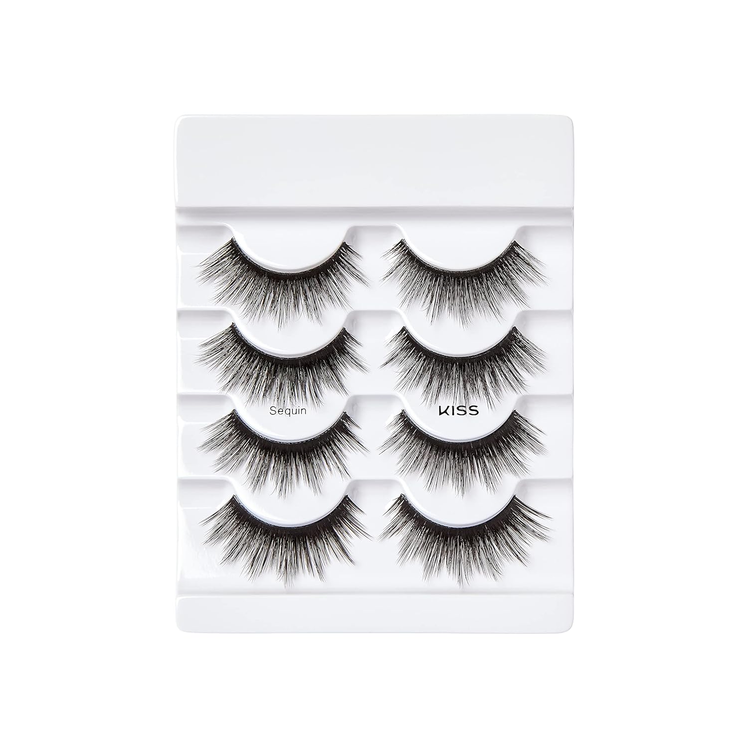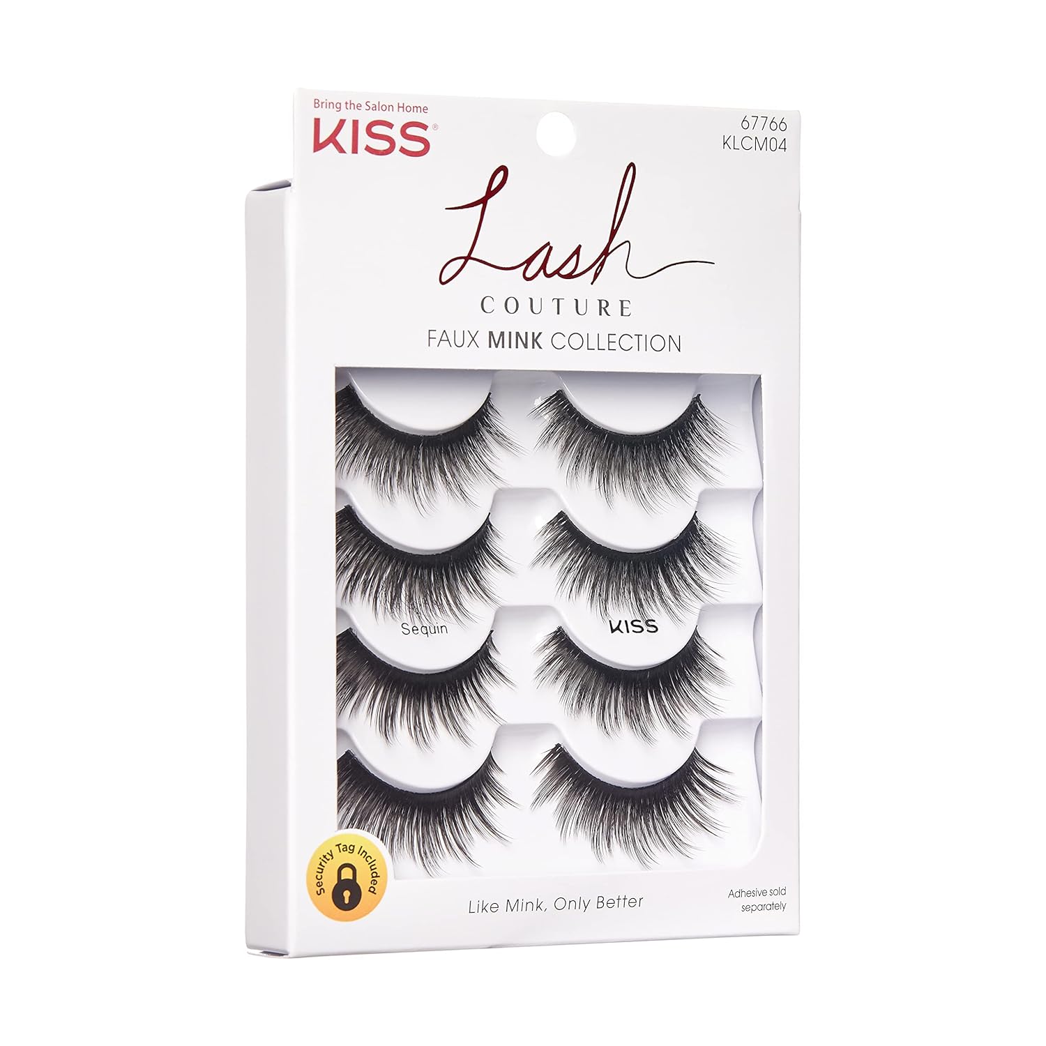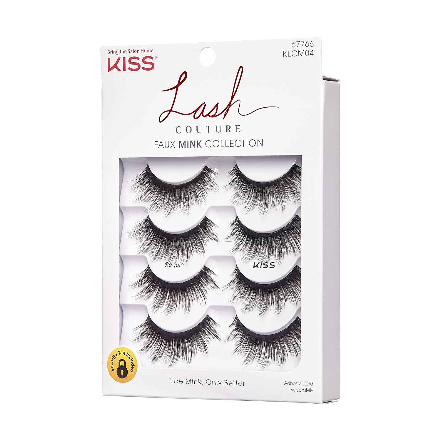 KISS Lash Couture Faux Mink False Eyelashes Multipack, Knot-Free Lash Band, Reusable, Contact Lens Friendly, Easy To Apply, Ultrafine, Tapered, Synthetic Fake Lashes, Style Sequin, 4 Pairs