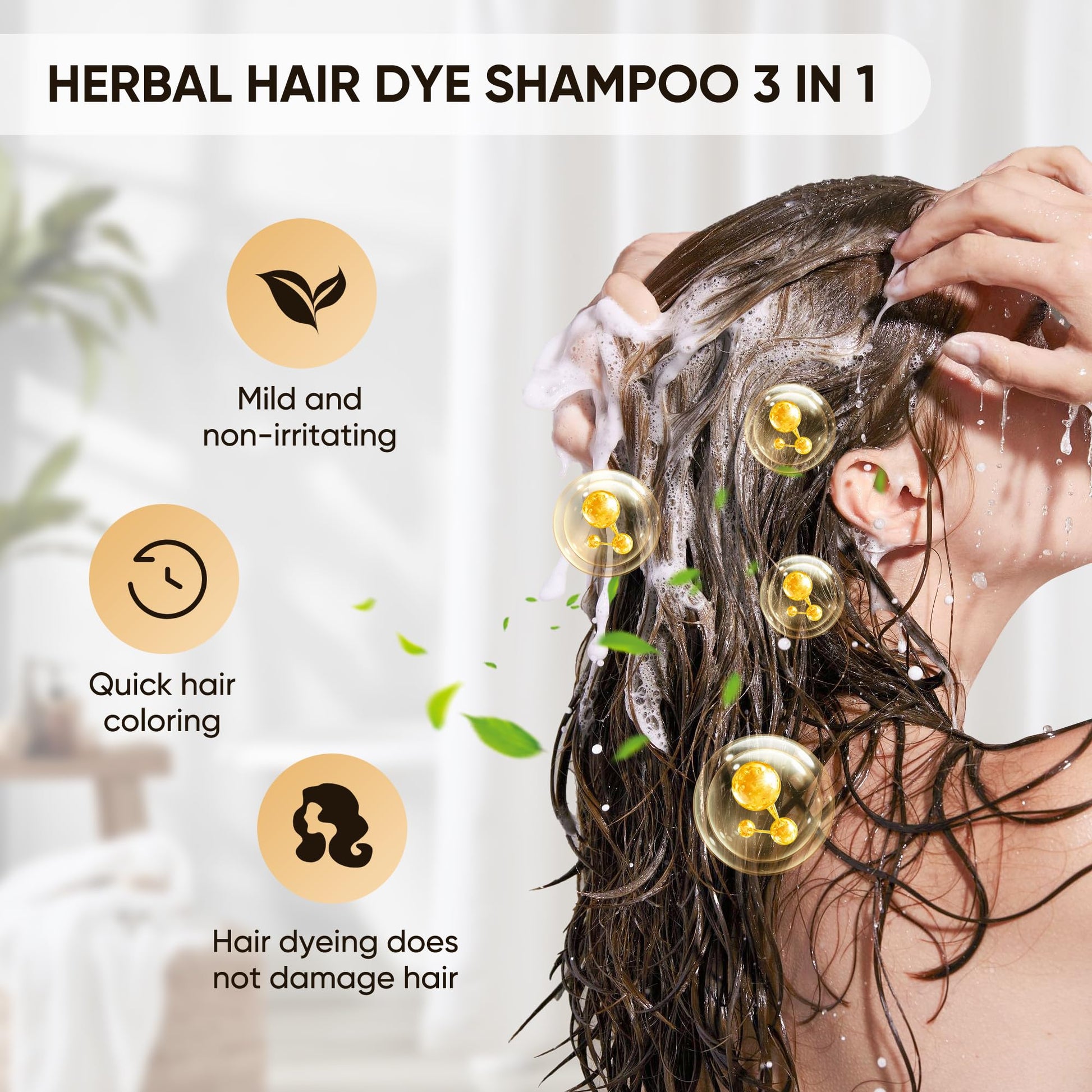Lancity Hair dye shampoo 3 in1 Instant Coloring Shampoo, 100% Gray Coverage for Men & Women, Herbal Ingredients, Fast Color Shampoo (Coffee Brown)