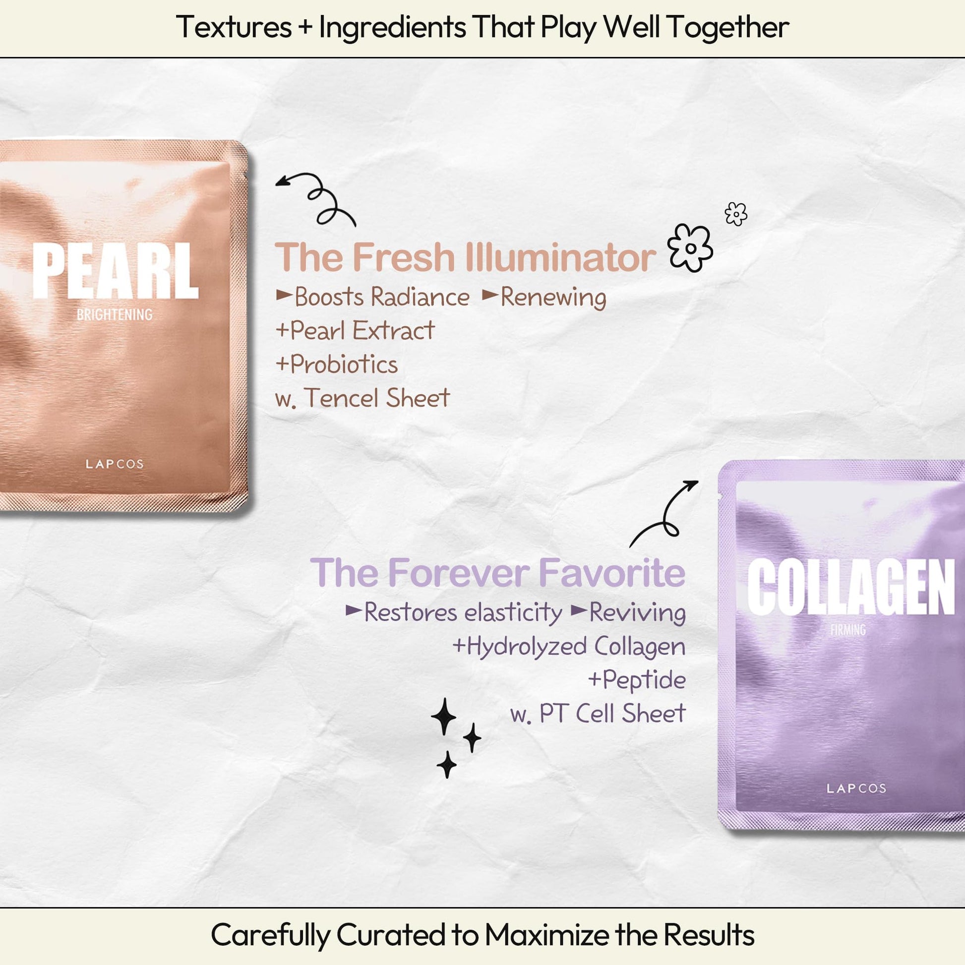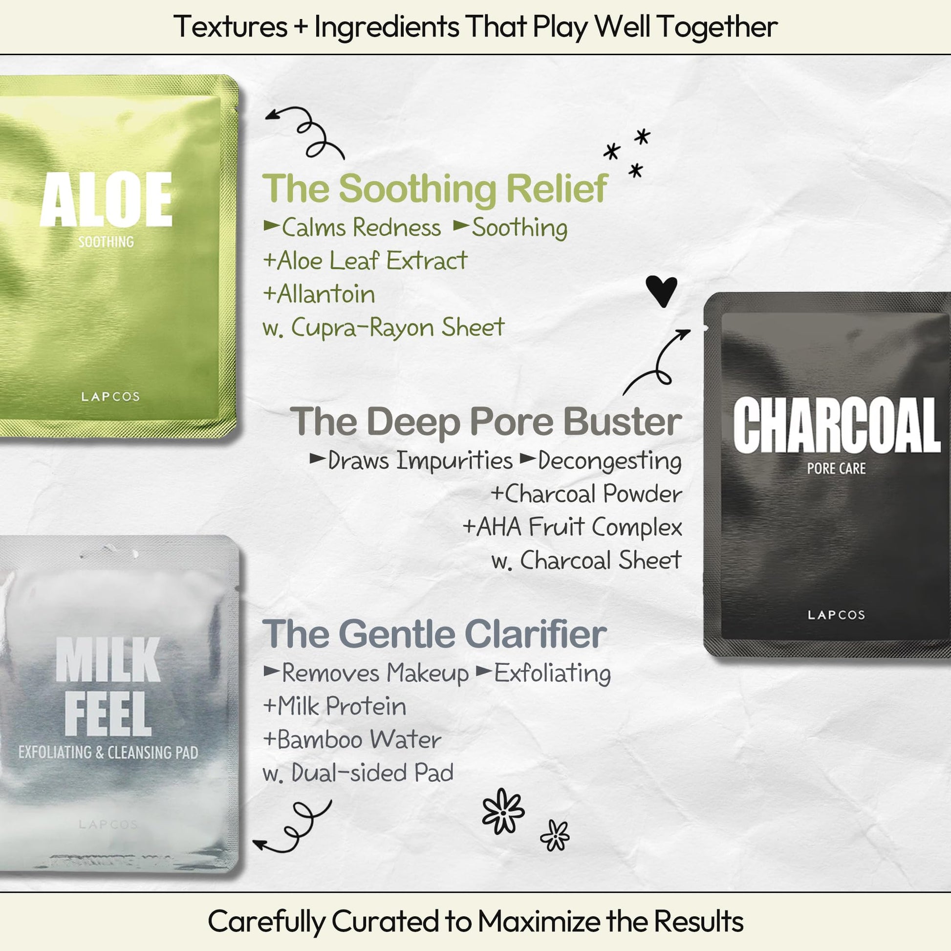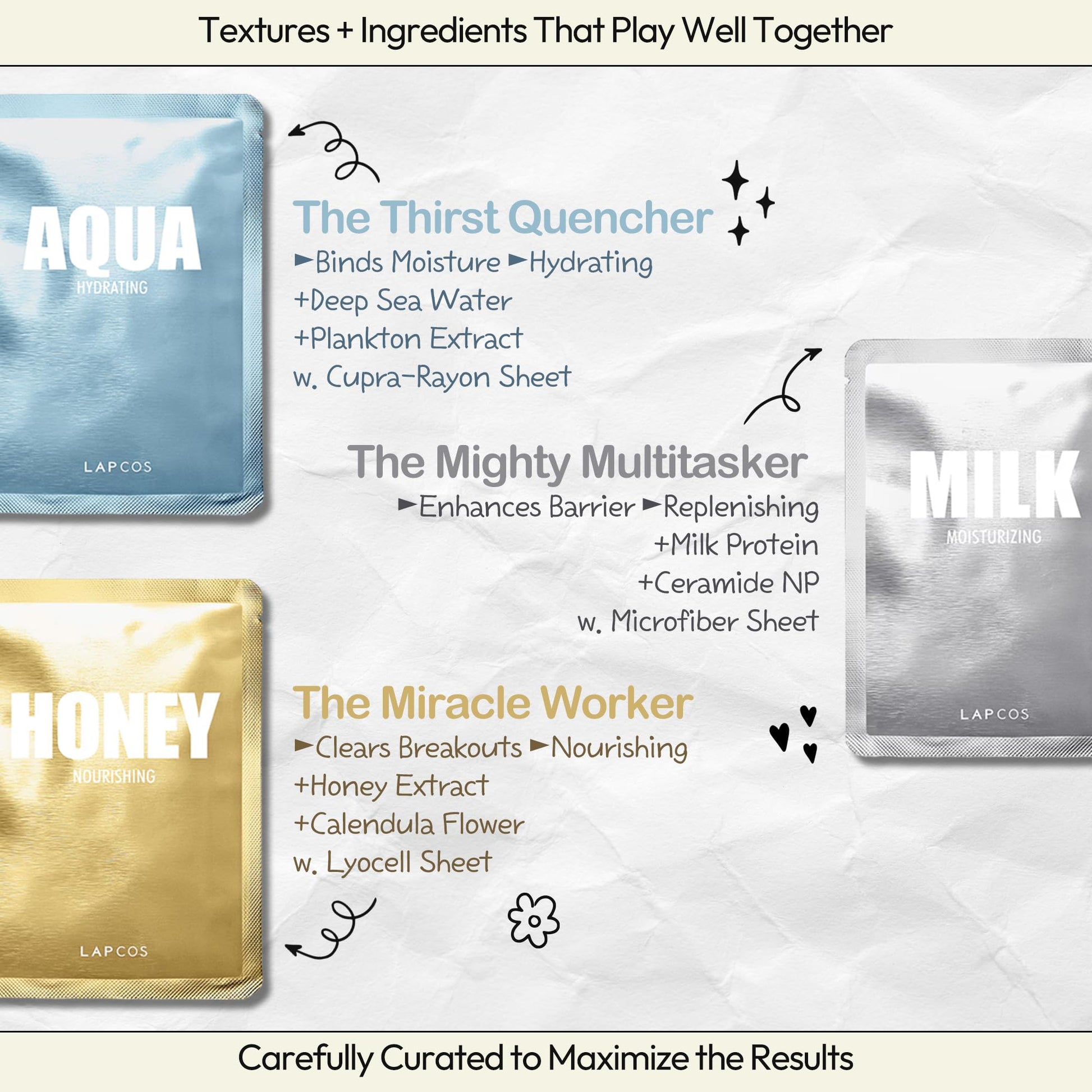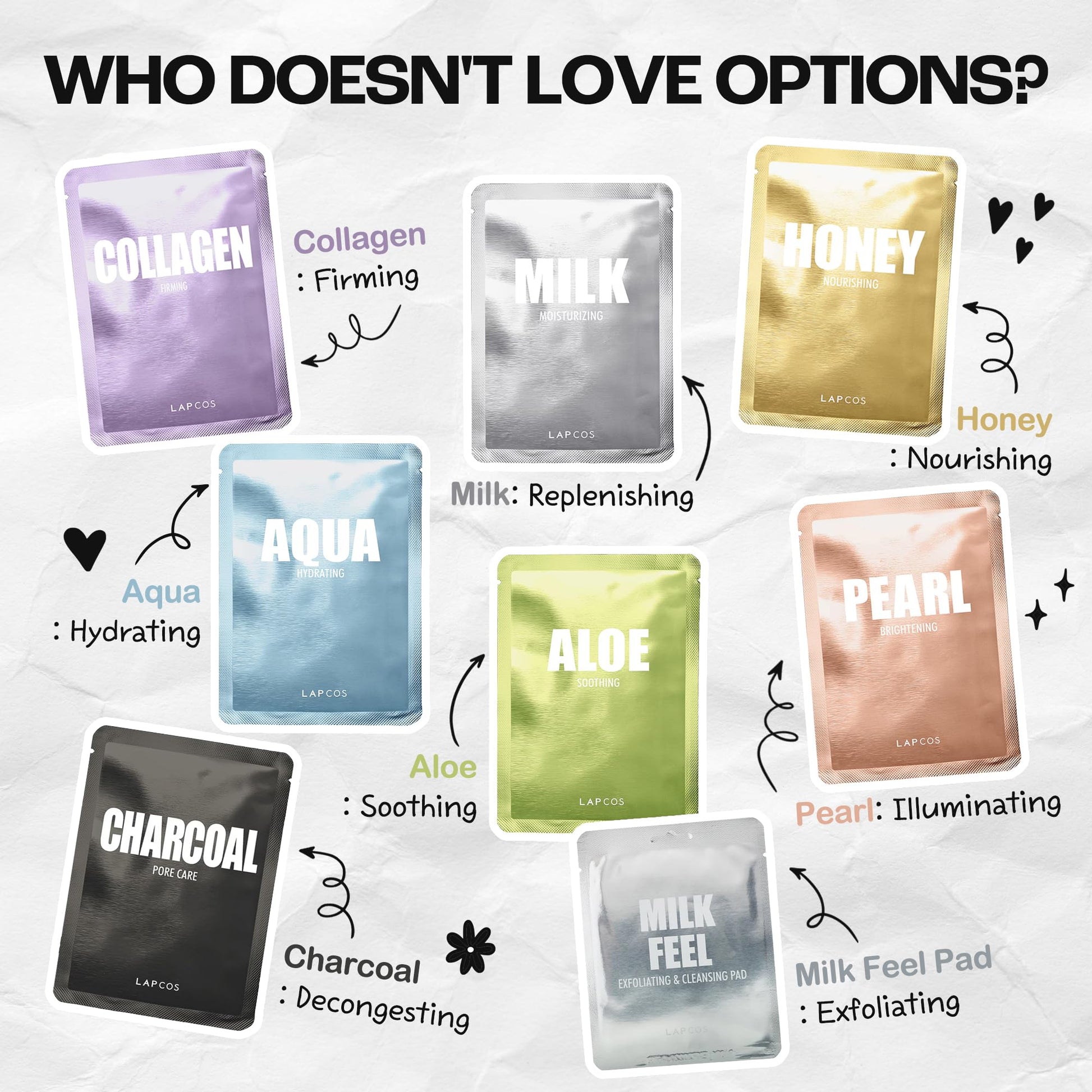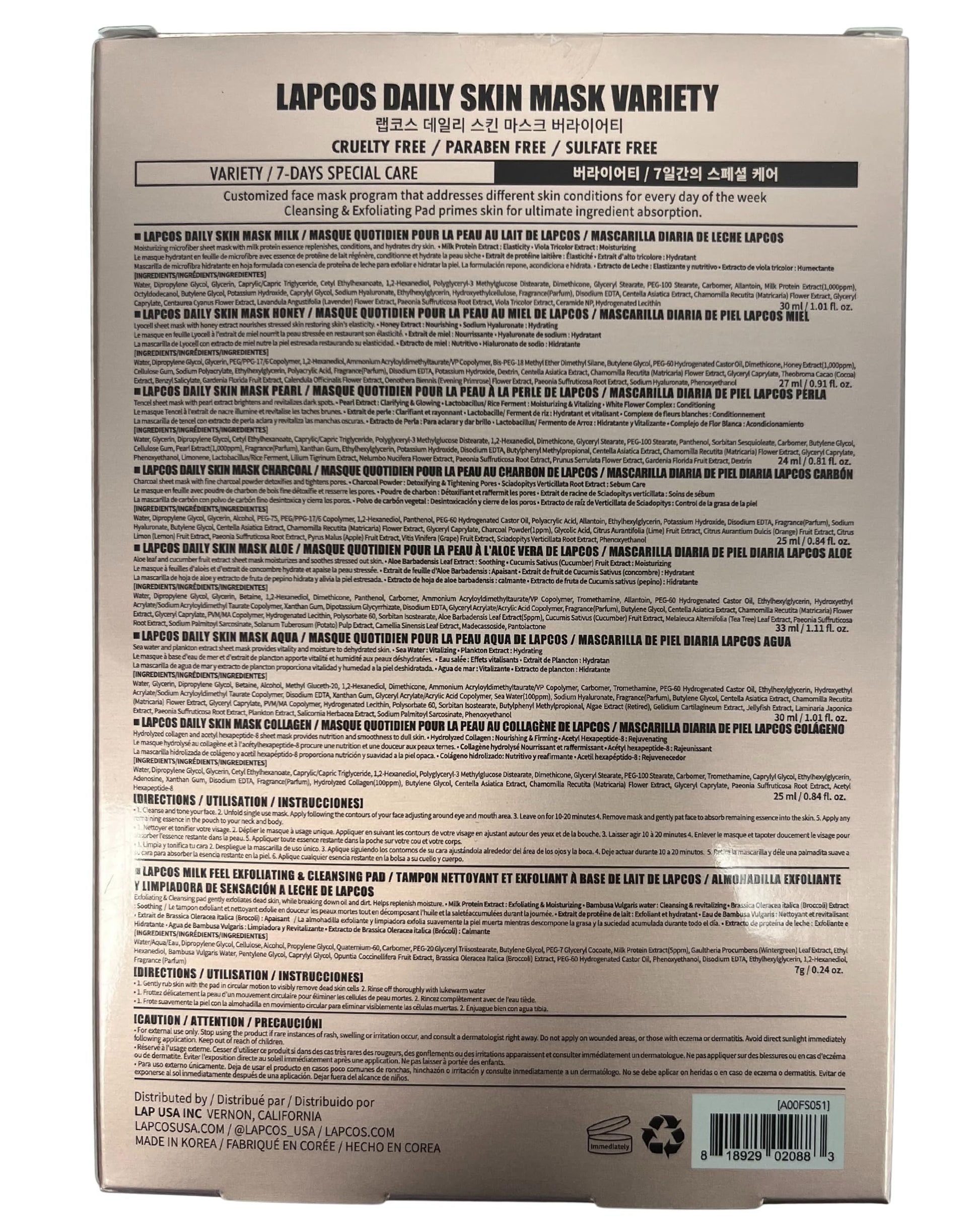 LAPCOS Daily Sheet Mask Variety Pack 7+1 (Version 1) Daily Face Masks - Hydrate, Clarify, Nourish, Exfoliate & Renew Skin, Korean Beauty Favorite (8 pack)