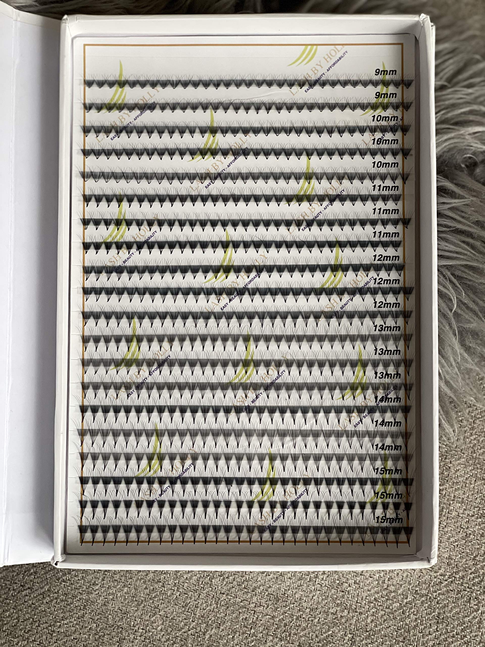 LASH BY HOLLY PRE-MADE HAND MADE LASH FANS- MIX LENGTHS 9-15MM. C, D curl. 600 FANS/TRAY FOR 3D, 4D, 5D, 6D, 7D, 8D. 500 FANS/TRAY FOR 10D. 480 FANS/TRAY FOR 12D. 400 FANS/TRAY FOR 14D (8D C)