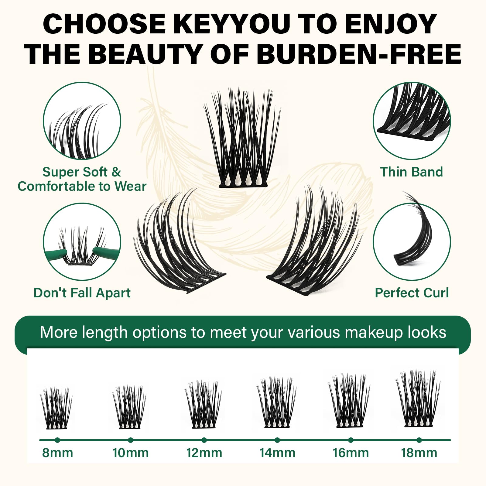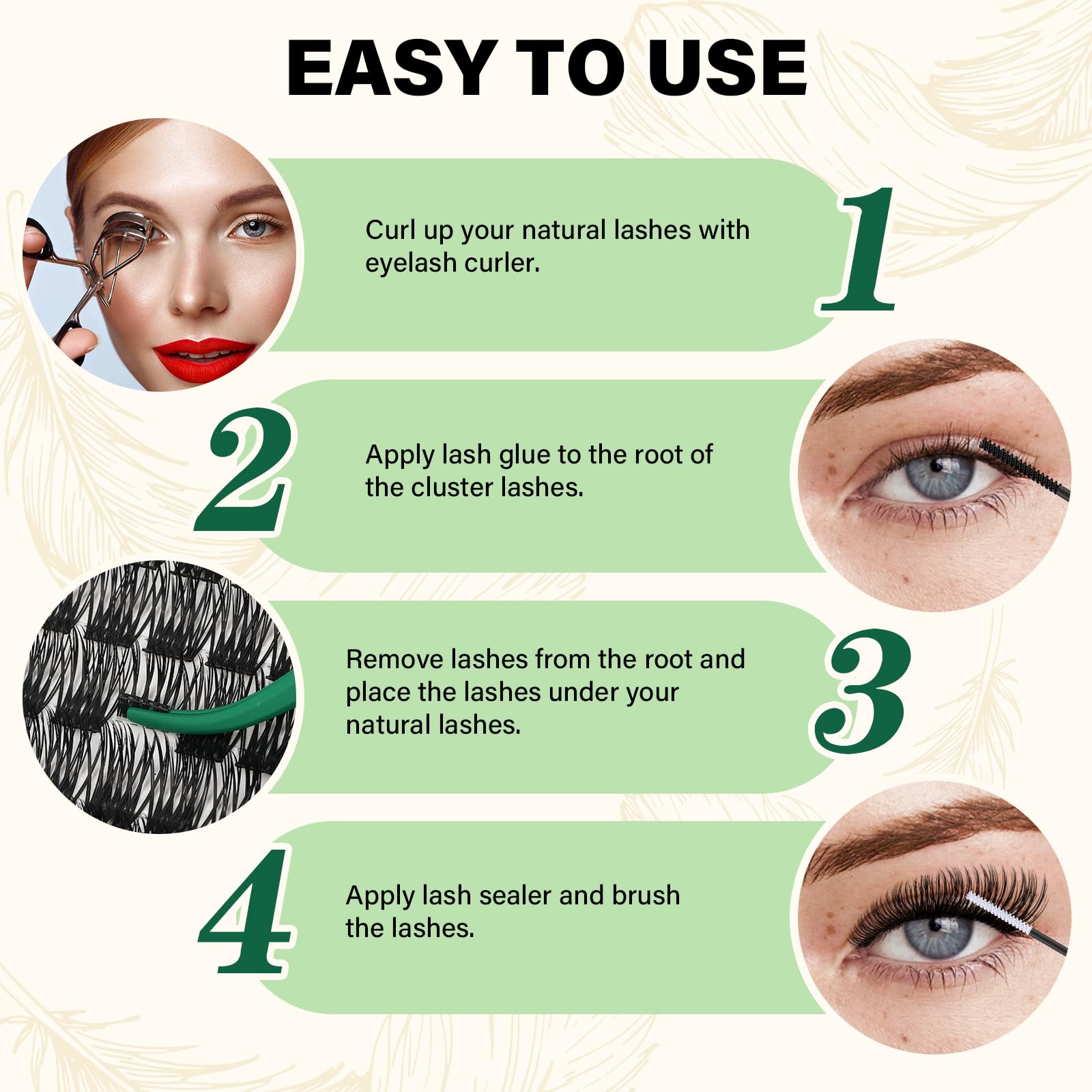 - ZERO HEAVY:The lash clusters made of ultra-ligheweight material,more softer than ordinary clusters lashes and comfortable and stress-free to wear.The eyelash clusters feel as light as feathers can be worn easily all day long.
