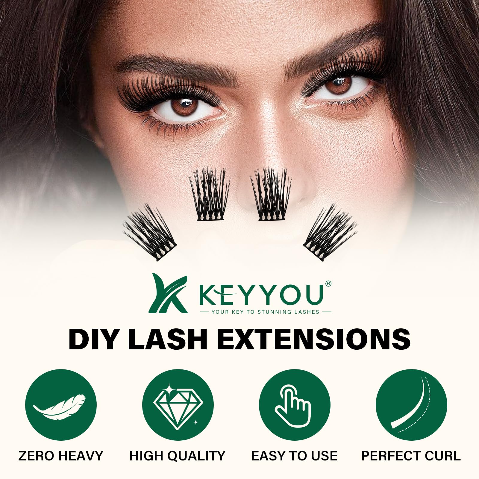 - HIGH QUALITY:KEYYOU lash clusters also made of high-grade fiber material.They have no plastic feel and very natural to wear,don‘t harm the eyes.
