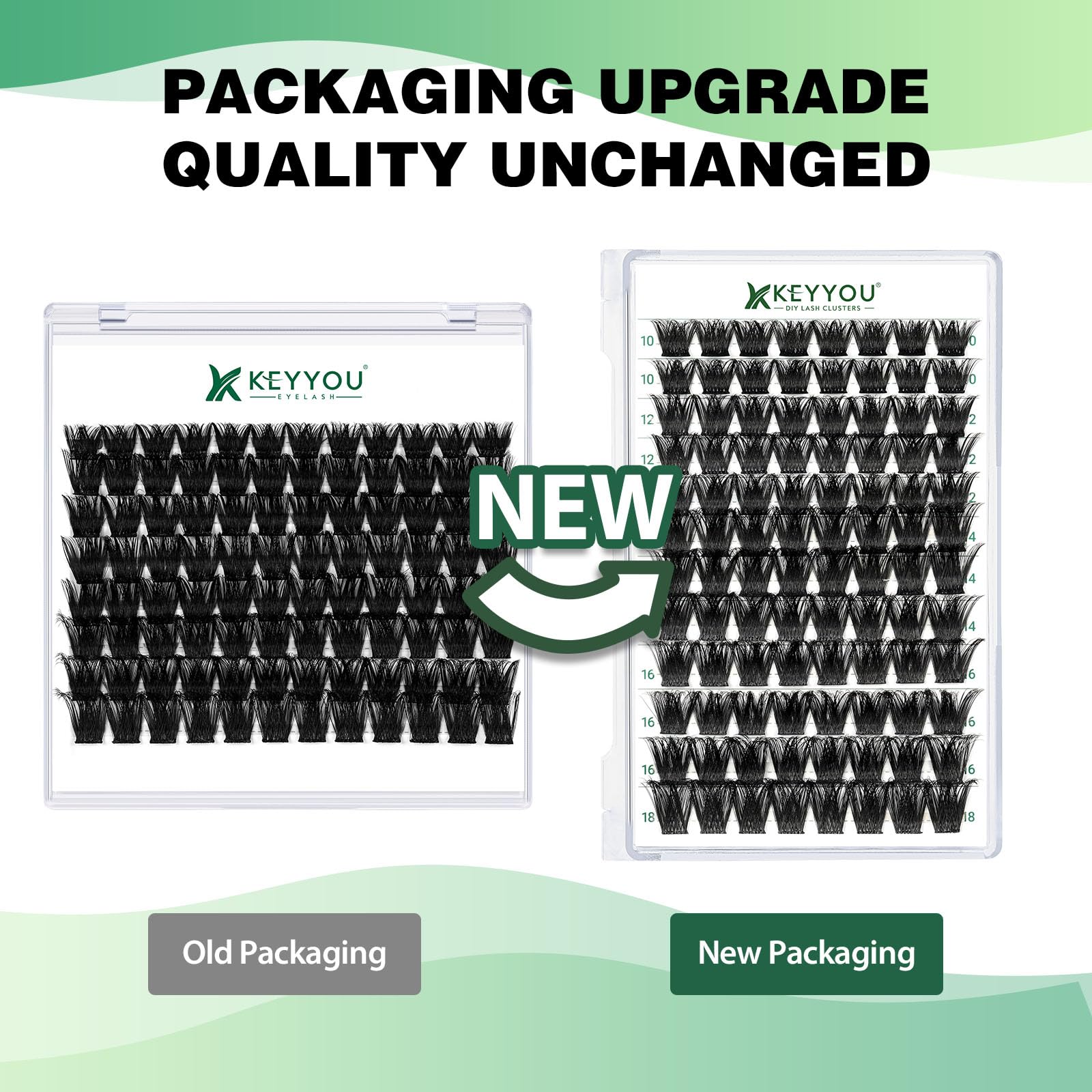 - 【Soft&Comfortable】KEYYOU lash cluster are made of imported materials,the stem line is thinner and softer, the eyelash cluster are lighter and more comfortable to wear.96 clusters in one tray ,more cost-effective.
