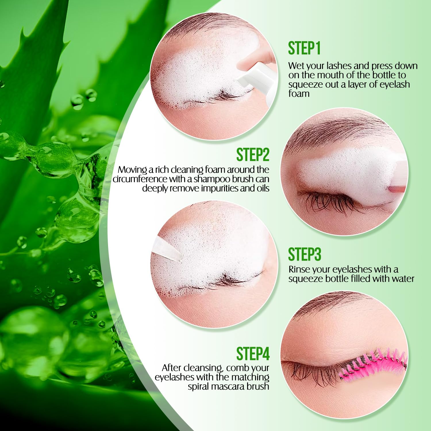 - Professionally formulated eyelash wash: Eyelash cleanser for extensions friendly for sensitive skin without irritation. The oil-free formula makes lash cleanser more refreshing. By using our gentle lash shampoo kit, can extend the life of natural and artificial lashes.
