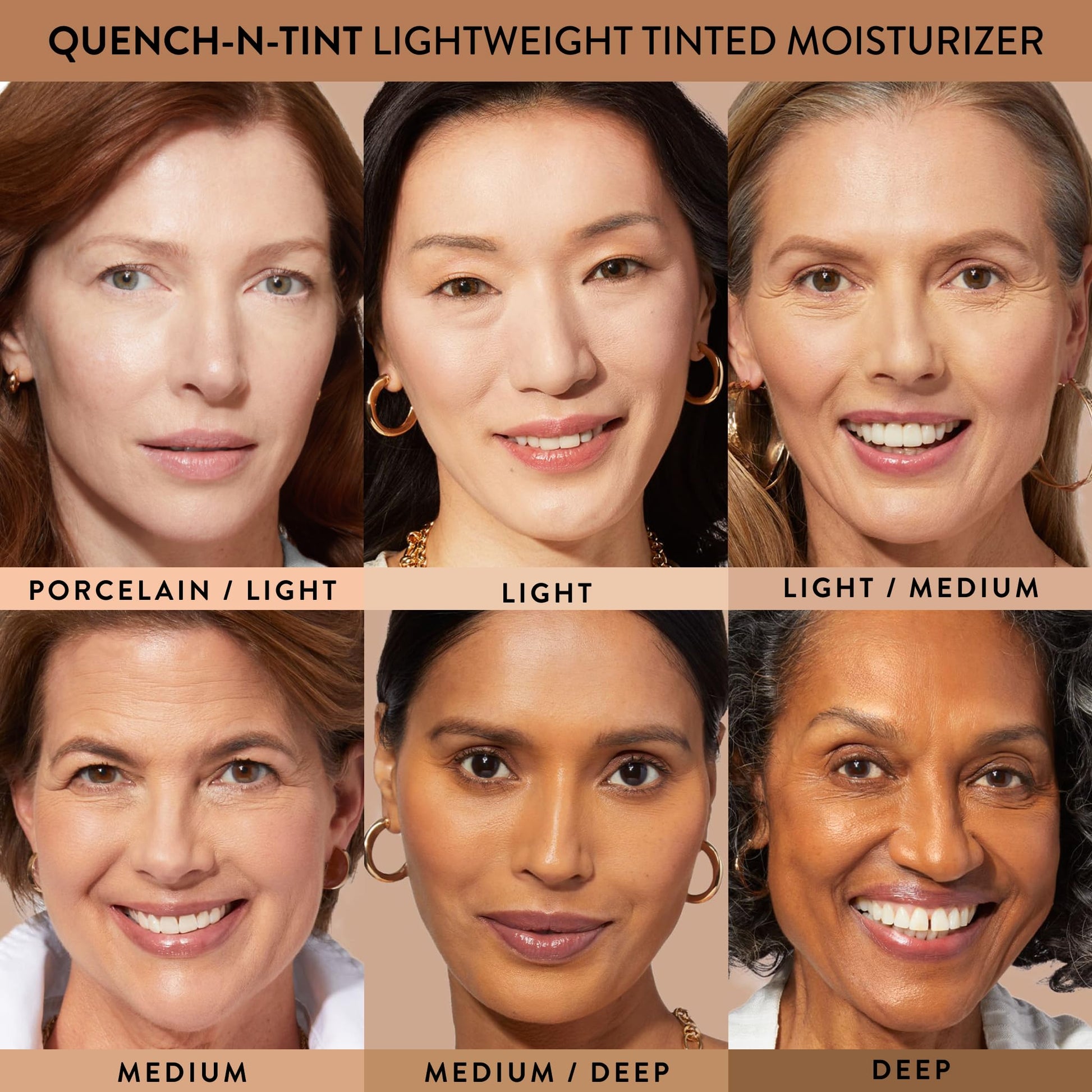 - QUENCH-N-TINT HYDRATING LIGHTWEIGHT COVERAGE HYLAURONIC ACID LIQUID FOUNDATION MAKEUP: Say goodbye to dry skin and hello to hydration! This lightweight foundation is the best of both worlds: sheer to coverage and a refreshing feel.