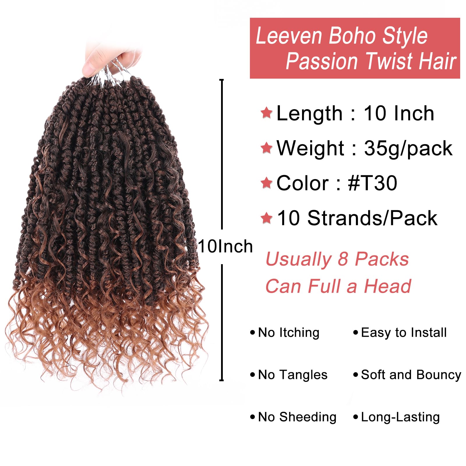 - 【Bohemian Passion Twist Hair】8 packs 10 inch crochet passion twist hair. 35g/pack, 10 Strands/pack, 80 Strands in total. Usually 8 packs can make a full head.