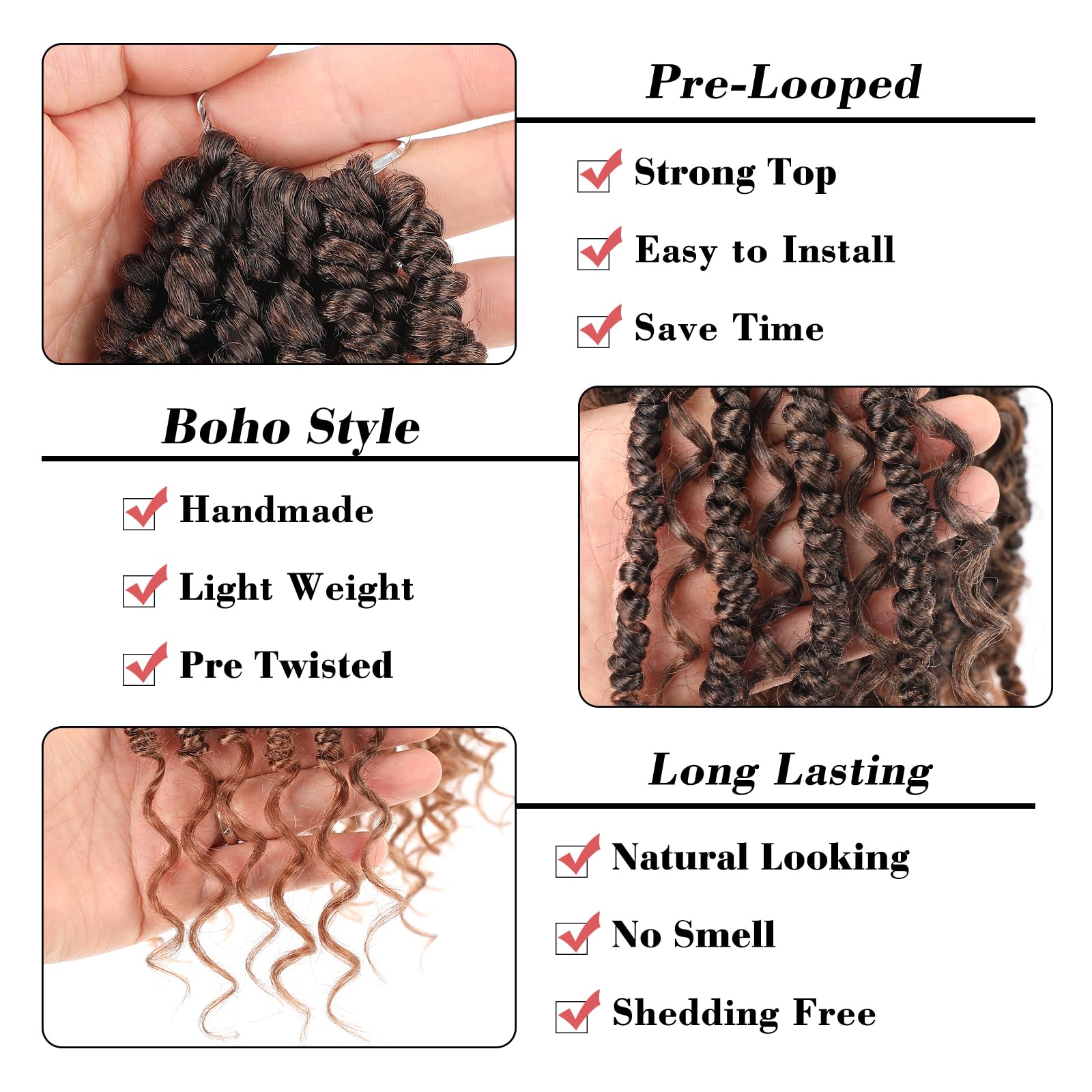 Leeven 8 Packs 10 Inch Goddess Passion Twist Crochet Hair Ombre Brown Boho Style Crochet Twist Pre Twisted Bomb Twist Curly Ends Pre Looped Bohemian Synthetic Braids for Women #T30
