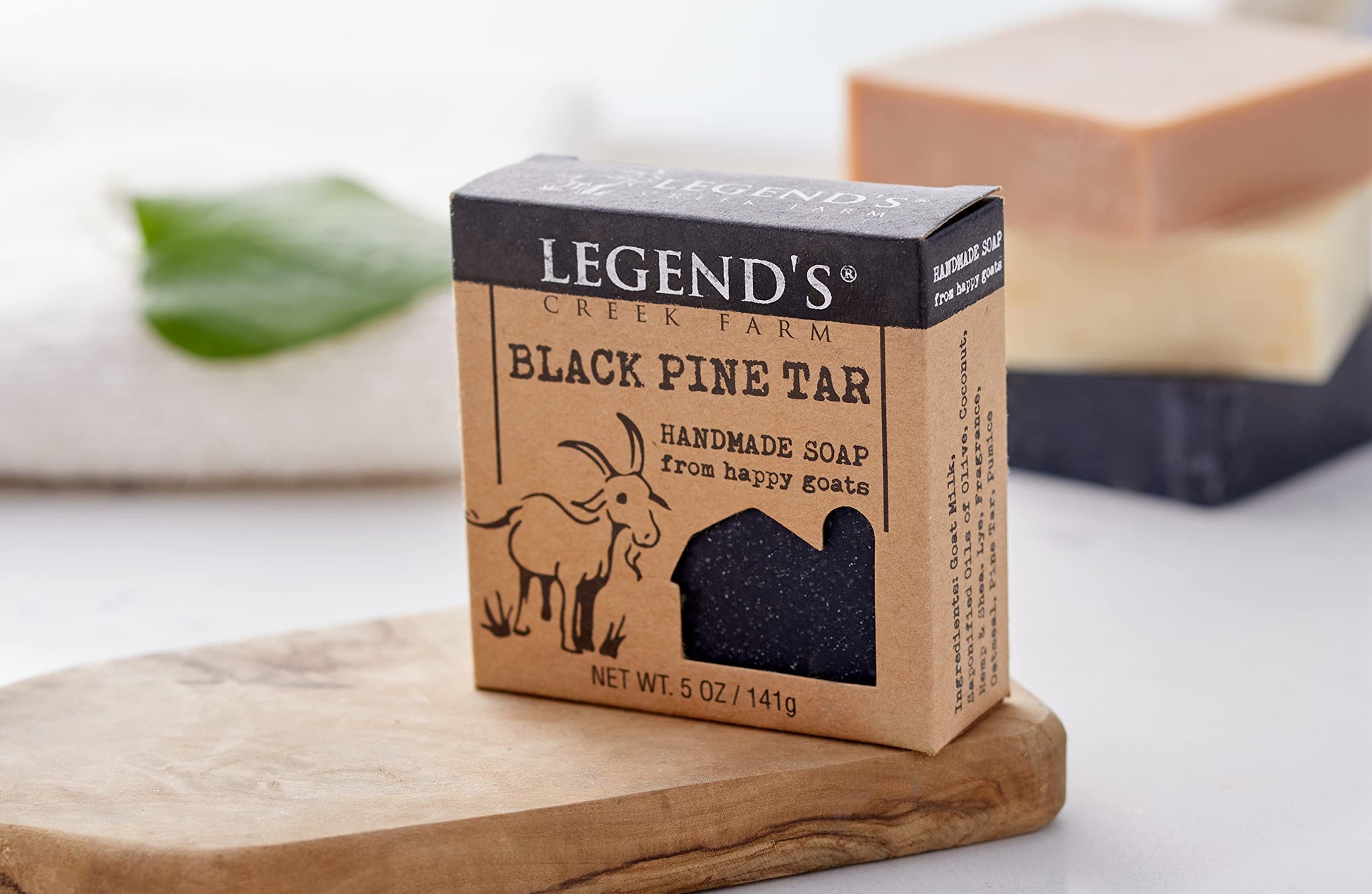 Legend's Creek Farm Goat Milk Soap - Cleansing Moisturizing Soap Bar for Hands and Body - 5 Oz Creamy Lather, Nourishing, Gentle Natural Soap for Sensitive Skin (Black Pine Tar, Pack of 2)