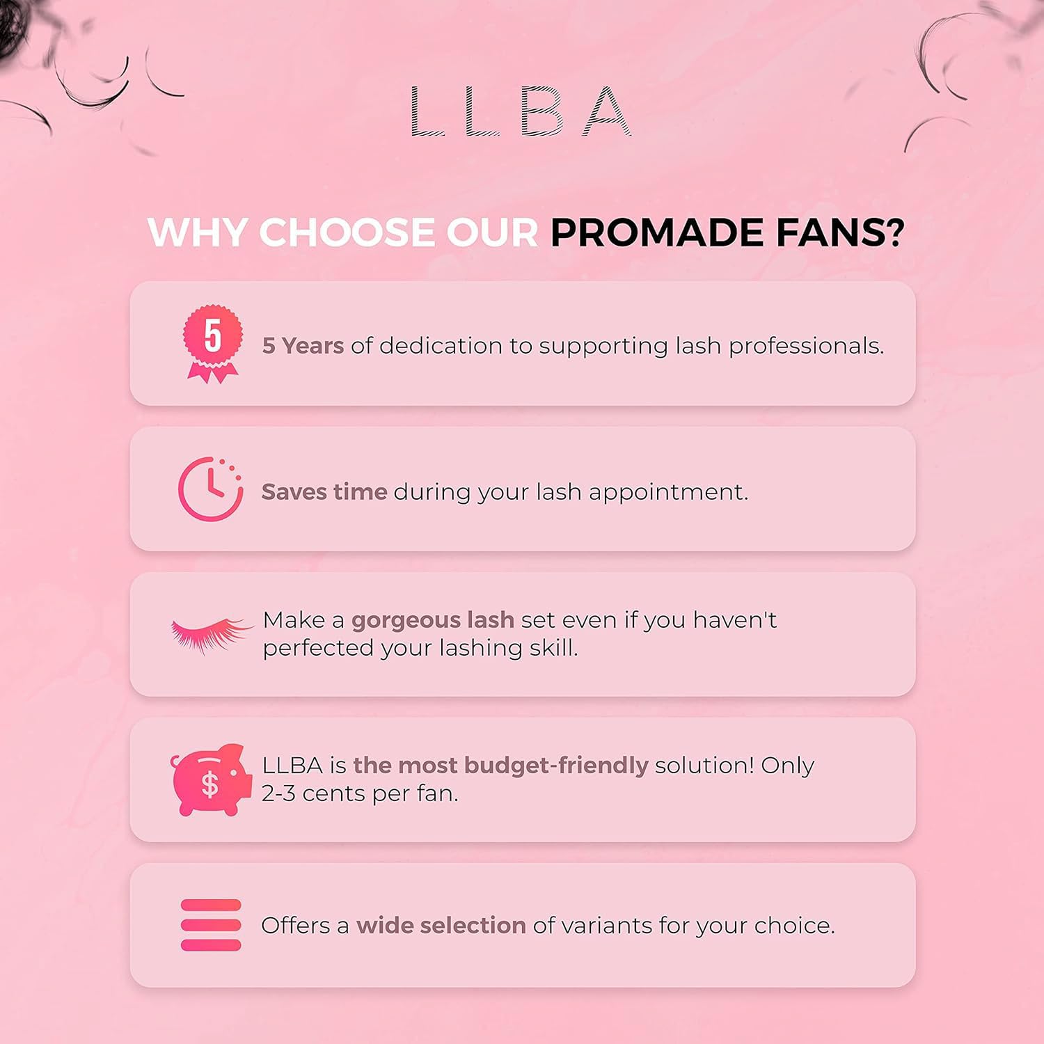 - ✅ NATURAL LOOK & LONG LASTING: LLBAProfessional Promade fans proper application can last 4-6 weeks. When it comes to promade fans, application and glue dipping are the keys. Great for any eye shape, LLBA lashes provide natural-looking curl and help your clients to augment their natural eyelashes easily stands among the best things you can do to help them achieve a truly stunning appearance.