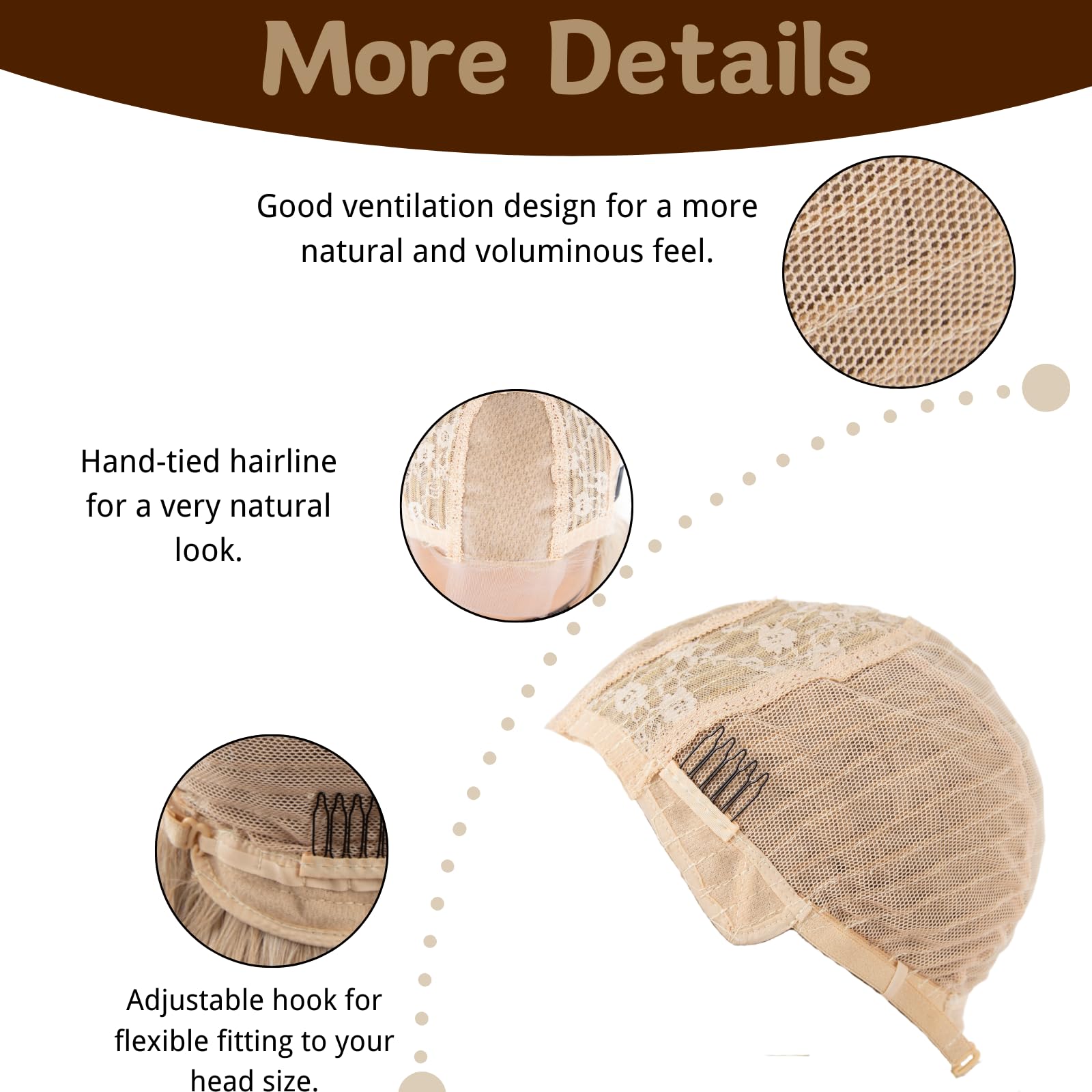 - Adjustable wig cap:Average size (21"-22.5"). Equipped with two elastic straps for a custom fit. The breathable rose net cap ensures comfort. Easy to install and remove, saving you time.