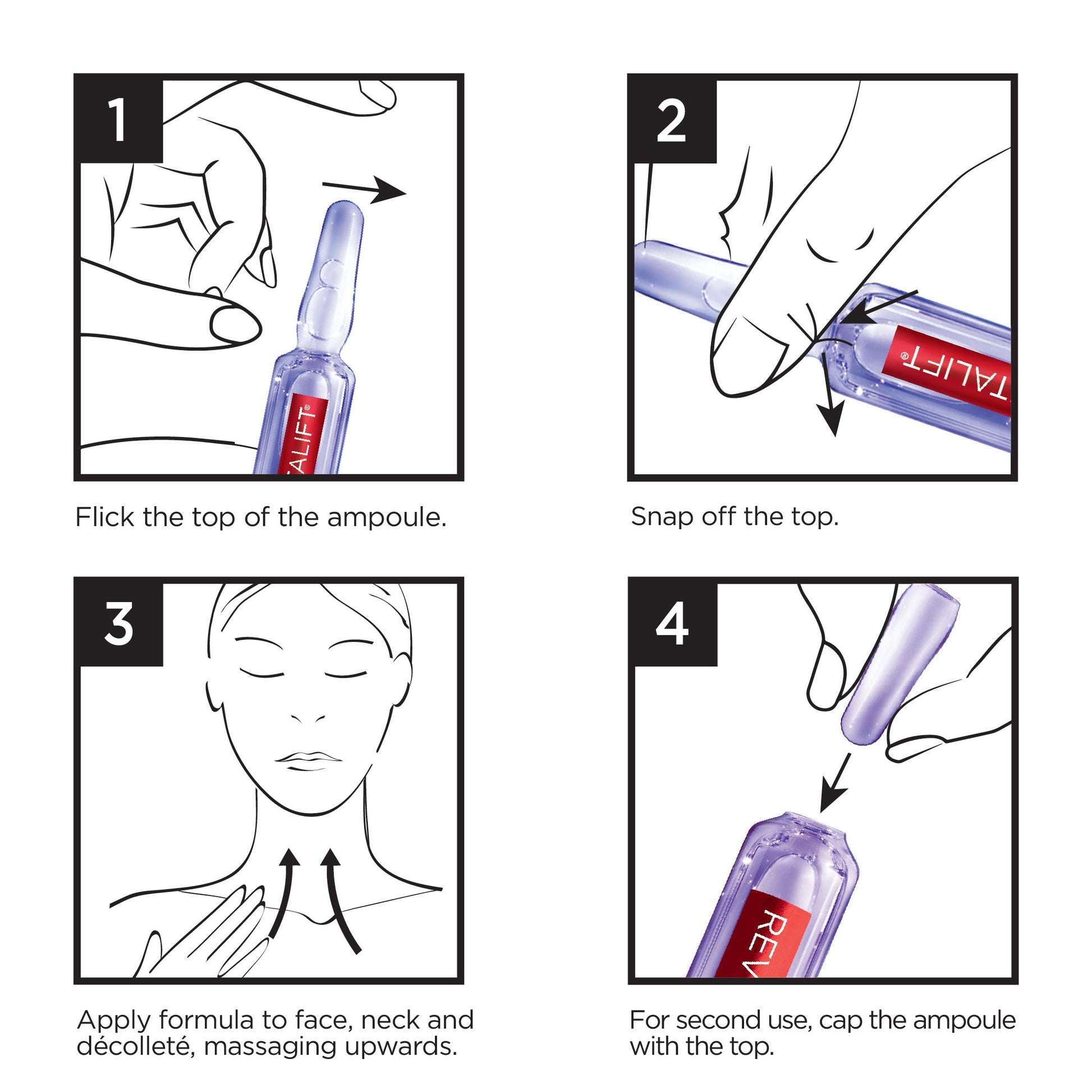 Details: Visibly re-plump skin and reduce wrinkles in 7 days! Dermatologist-validated, new Revitalift Derm Intensives 1.9% pure Hyaluronic Acid Plumping Ampoules are 7 doses of pure hyaluronic acid to instantly hydrate skin and replump skin in 7 days. Tap, crack, and release the power of our highest concentration of hyaluronic acid. Each individual ampoule has an optimal amount of hyaluronic acid to equal 7 doses to bounce back your skin. After 1 ampoule, skin looks visibly smoother and instantly feels hydrated. After 7 ampoules, skin looks healthier, replumped, and wrinkles are visibly reduced. Hyaluronic acid is a potent hydration-attracting molecule naturally found in skin and recommended by dermatologists to enhance skin's own moisture-retention for lasting hydration. Revitalift Derm Intensives 1.9% Pure Hyaluronic Acid Plumping Ampoules is allergy tested, Paraben free, Fragrance Free, Dye Free, mineral oil free.