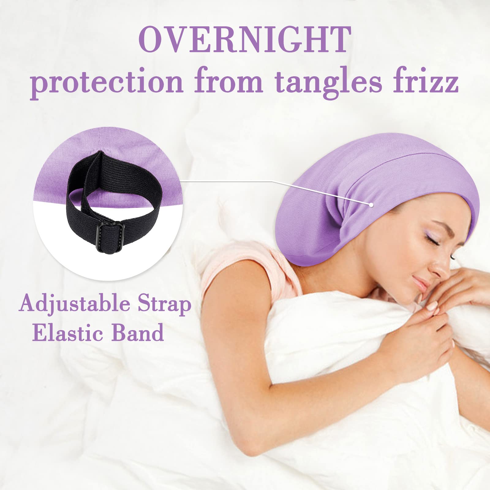 - STAY ON ALL NIGHT WITH UPGRATED ADJUSTABLE STRAP: It seems that most sleep caps on the market faces the problem of slippage. That's really a bummer for a night cap since it is made to protect your hair while sleeping. To fix this issue, our silk hair wrap for sleeping, using updated adjustable strap and elastic band with unique design, can largely resolve this issue. And since it is adjustable, this sleep cap fits most head sizes, suitable for both women and men