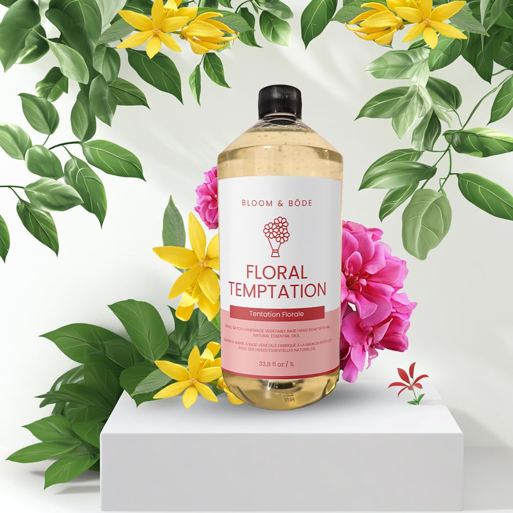 - Floral Temptation Liquid Soap Refill: Perfect as a decorative hand soap for bathrooms, kitchens, or offices. Turn every hand wash into a revitalizing, energizing, and refreshing experience with our Floral Temptation scent made with Egyptian Geranium and Ylang Ylang from Madagascar essential oils.
