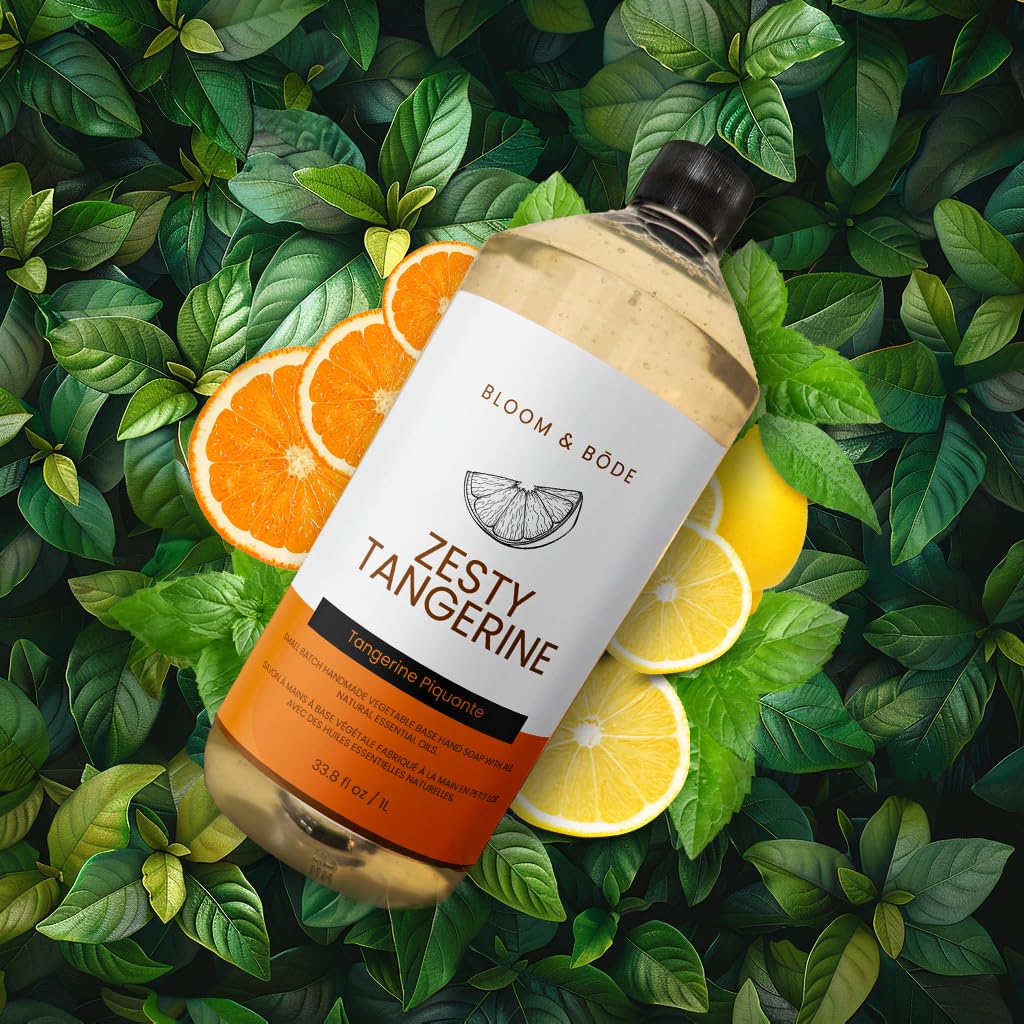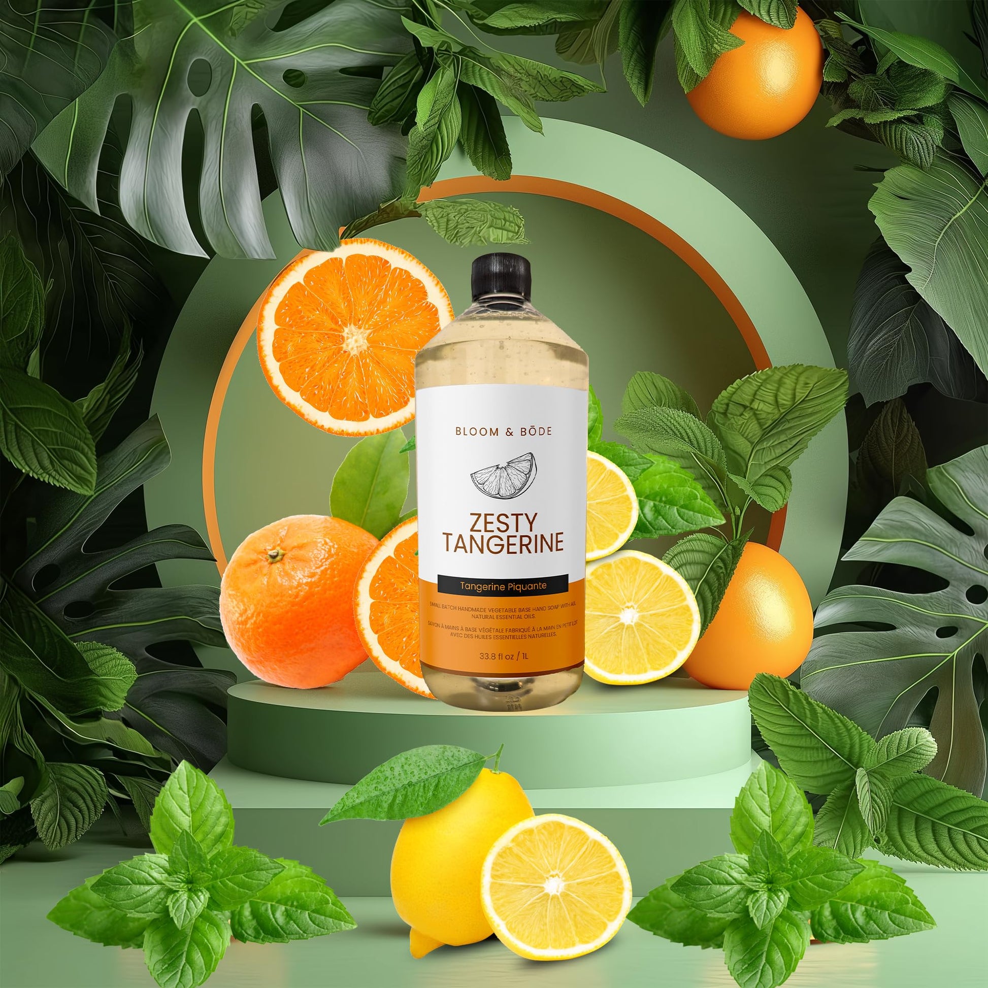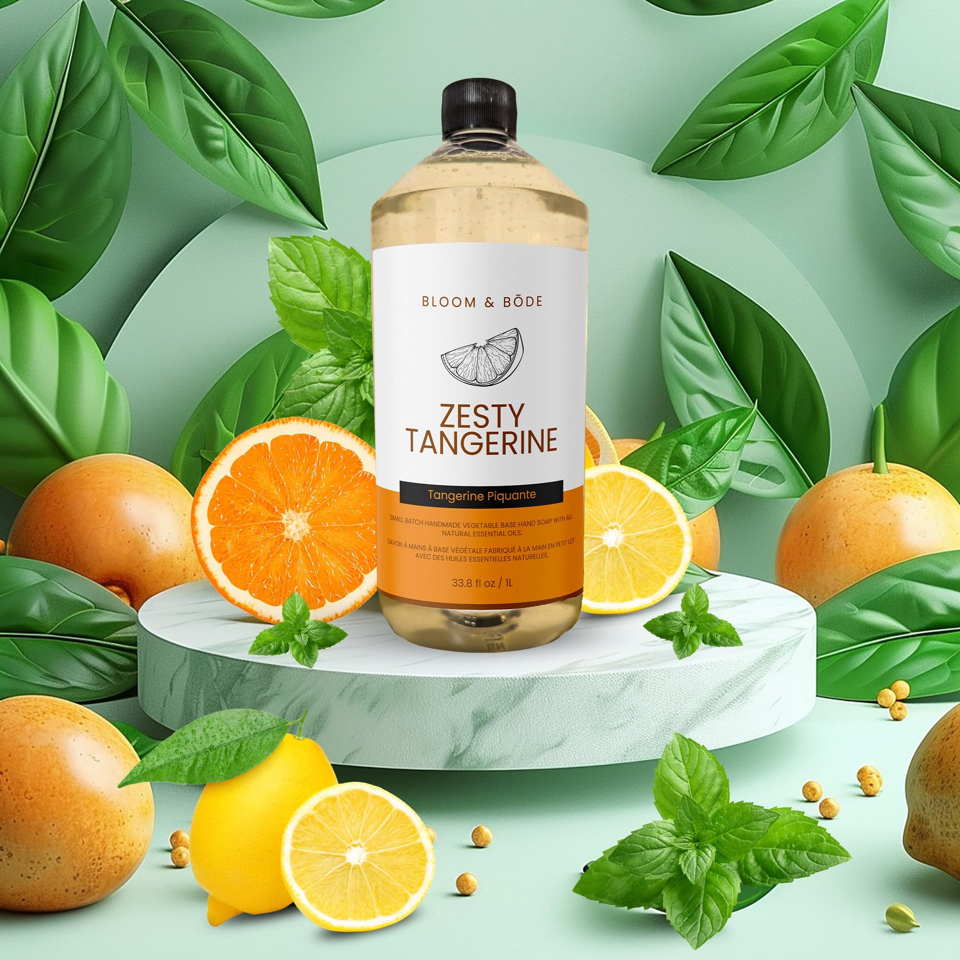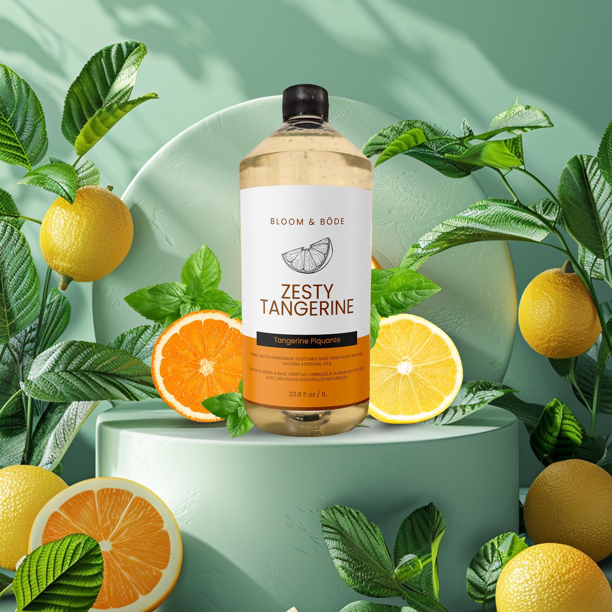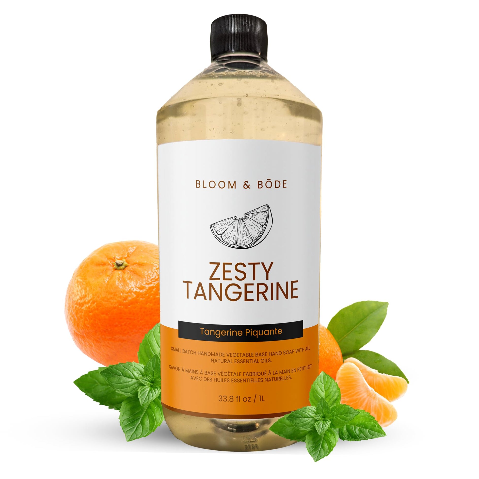 - Zesty Tangerine Liquid Soap Refill: Perfect as a decorative hand soap for bathrooms, kitchens, or offices. Turn every hand wash into a revitalizing, energizing, and refreshing experience with our Zesty Tangerine scent made with Italian Tangerine and Spearmint essential oils.