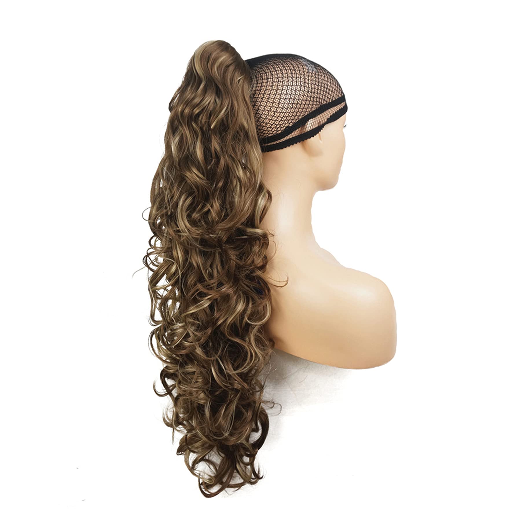 Lydell 30" Long Curly Styled Clip In Claw Ponytail Hair Extension Synthetic Hairpiece 280g with a jaw/claw clip (AB607 Brown Mix)