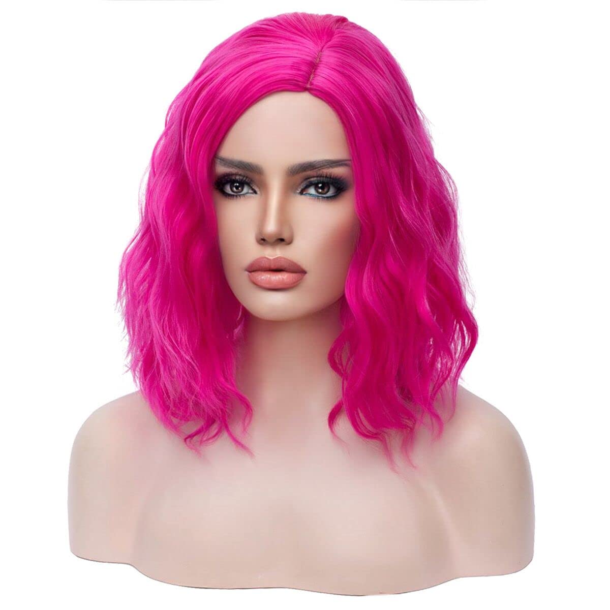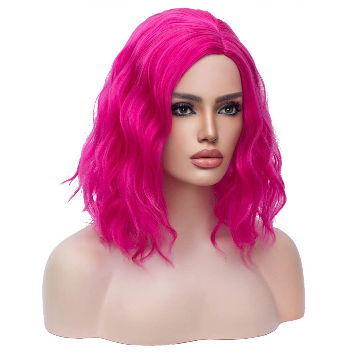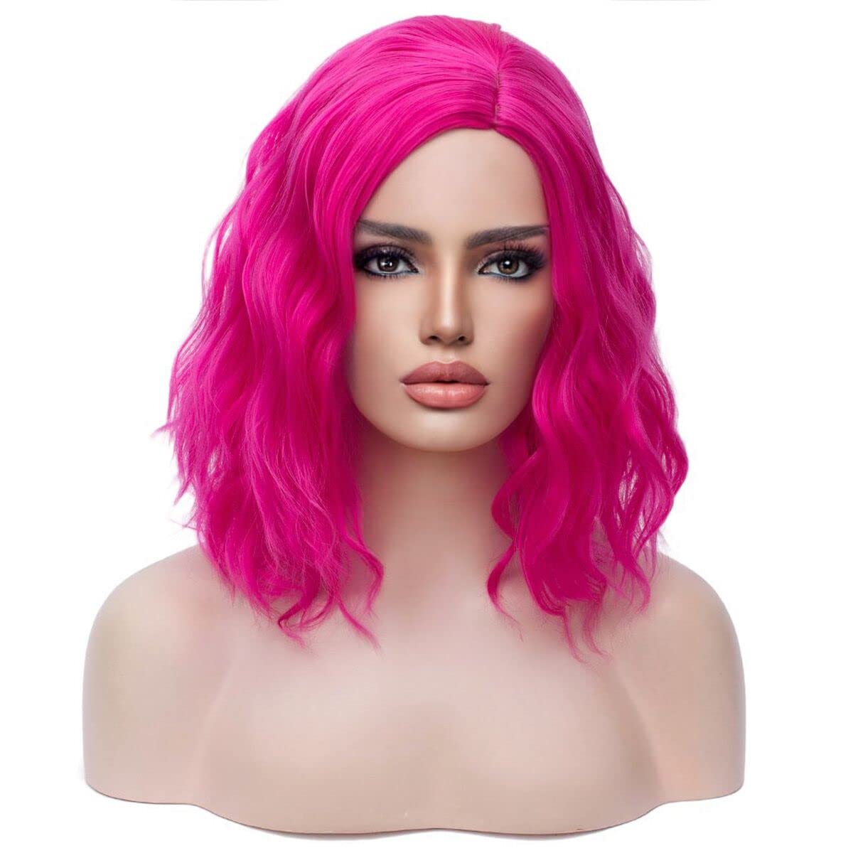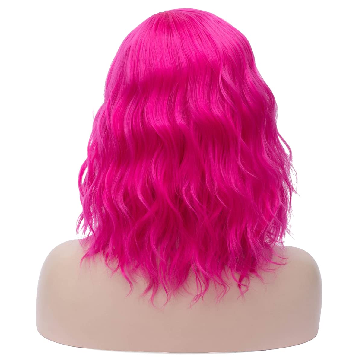 MAGQOO Hot Pink Wig Short Hot Pink Wig Hot Pink Bob Wig Short Curly Wavy Magenta Wig Side Part Pink Wig Short Hair Synthetic Heat Resistant