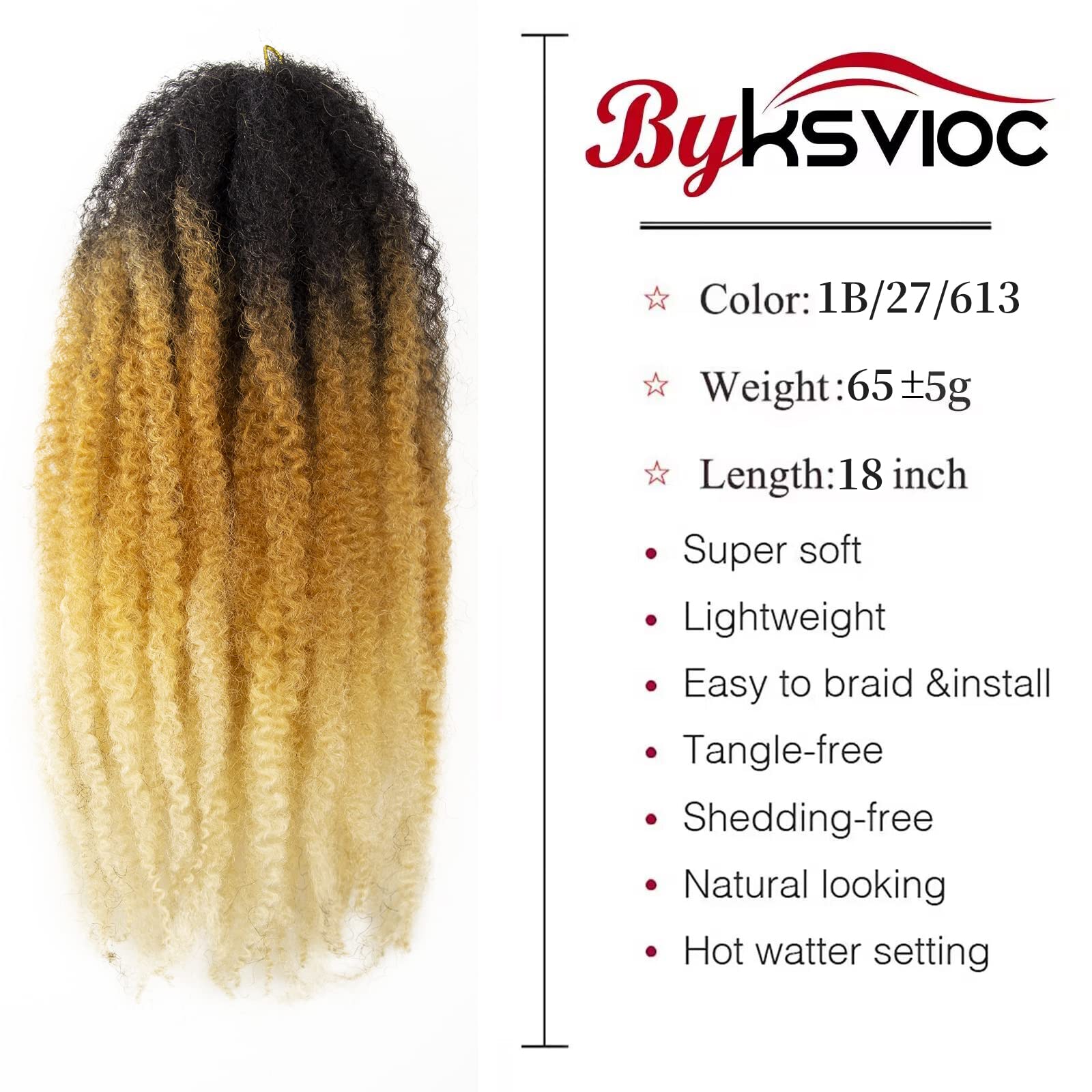 Marley Hair 18 Inch Marley Twist Hair Afro Twist Marley Braiding Hair for Faux Locs Crochet Hair Synthetic Hair Extensions(6Packs,1B/27/613, 18inch)