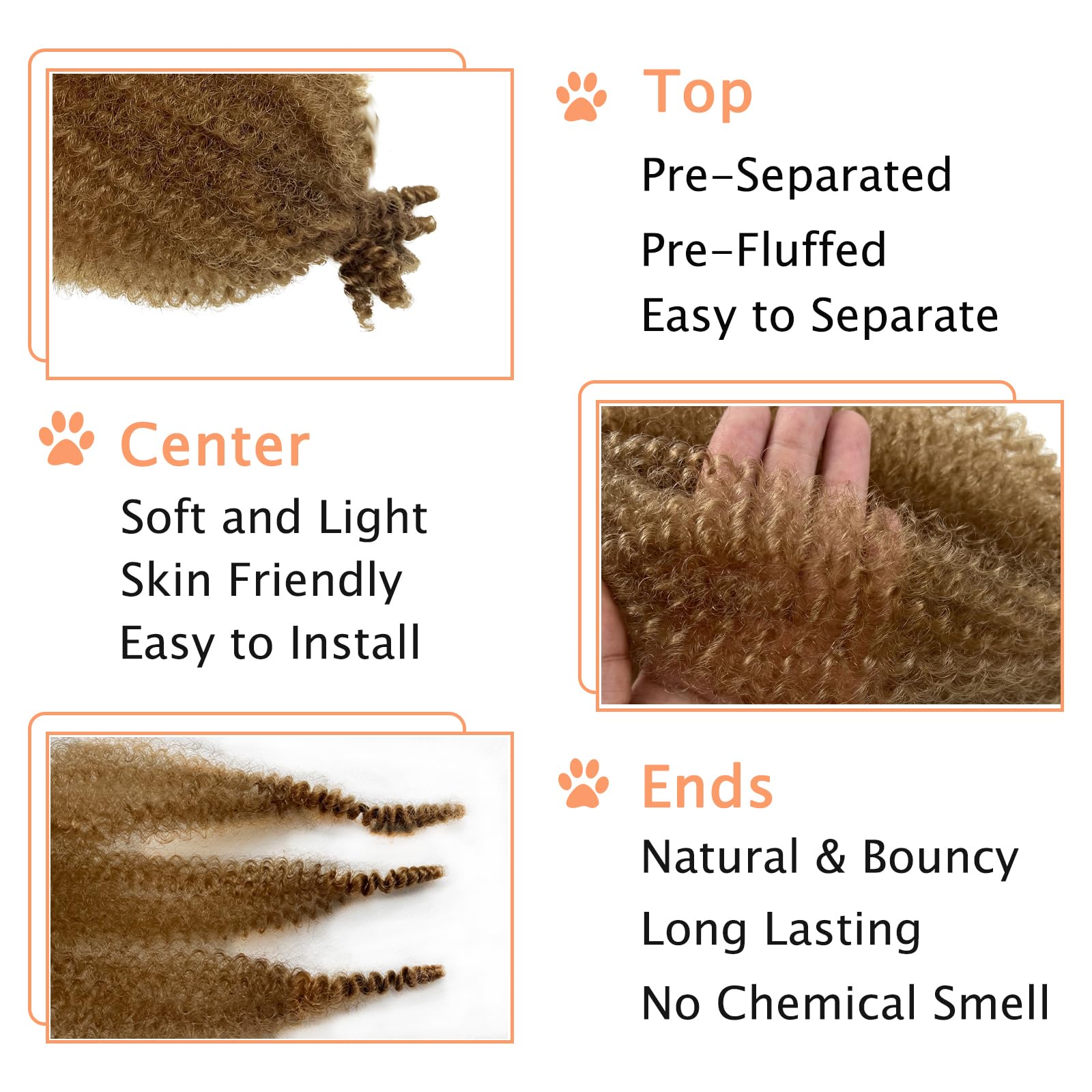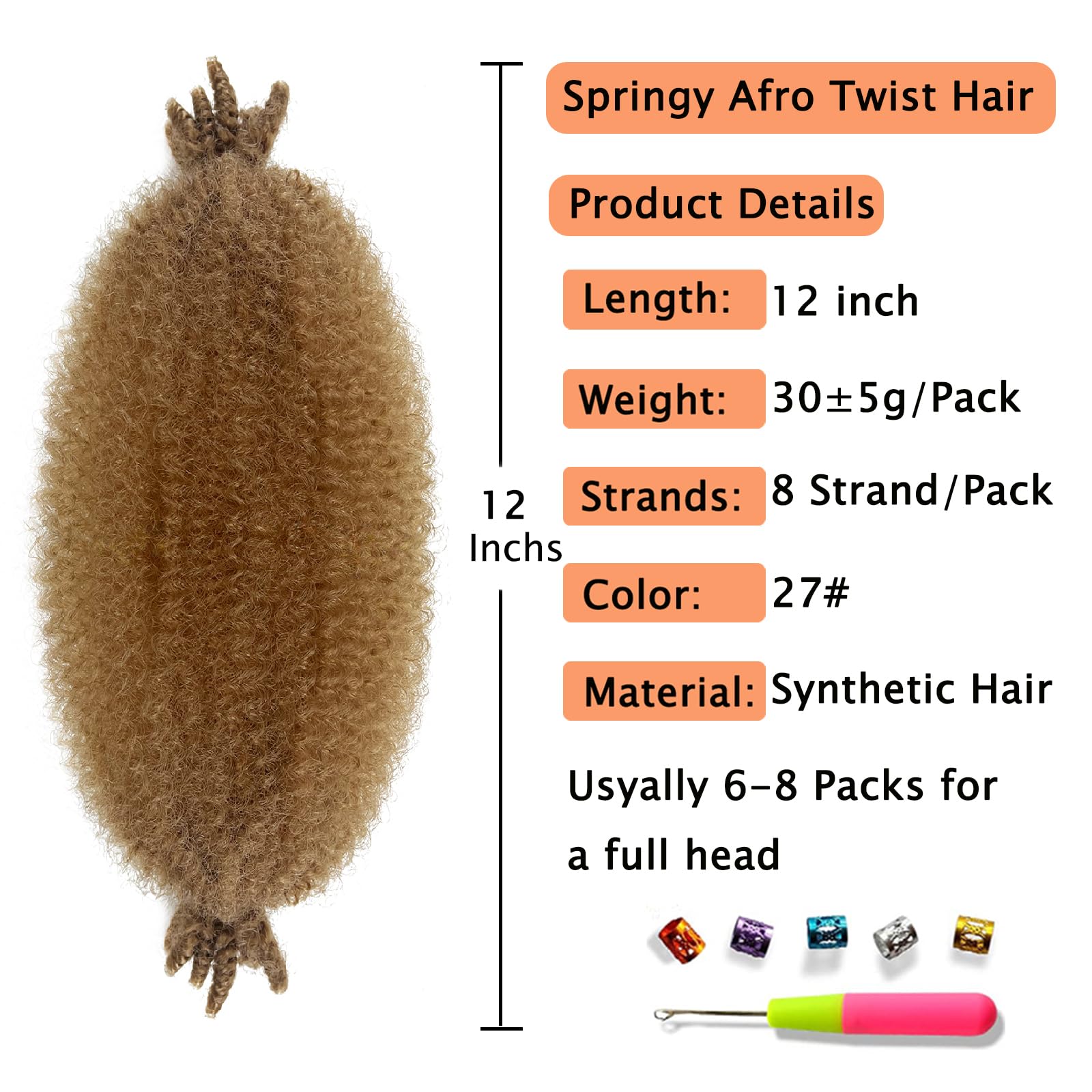 - Multi Color Option:Springy afro twist hair is color: 1B, 4#, 27#, 30#, 350#, 613#, blue, green, red. From natural shades to bold and vibrant hues, choose your color, allows you to express your individuality effortlessly