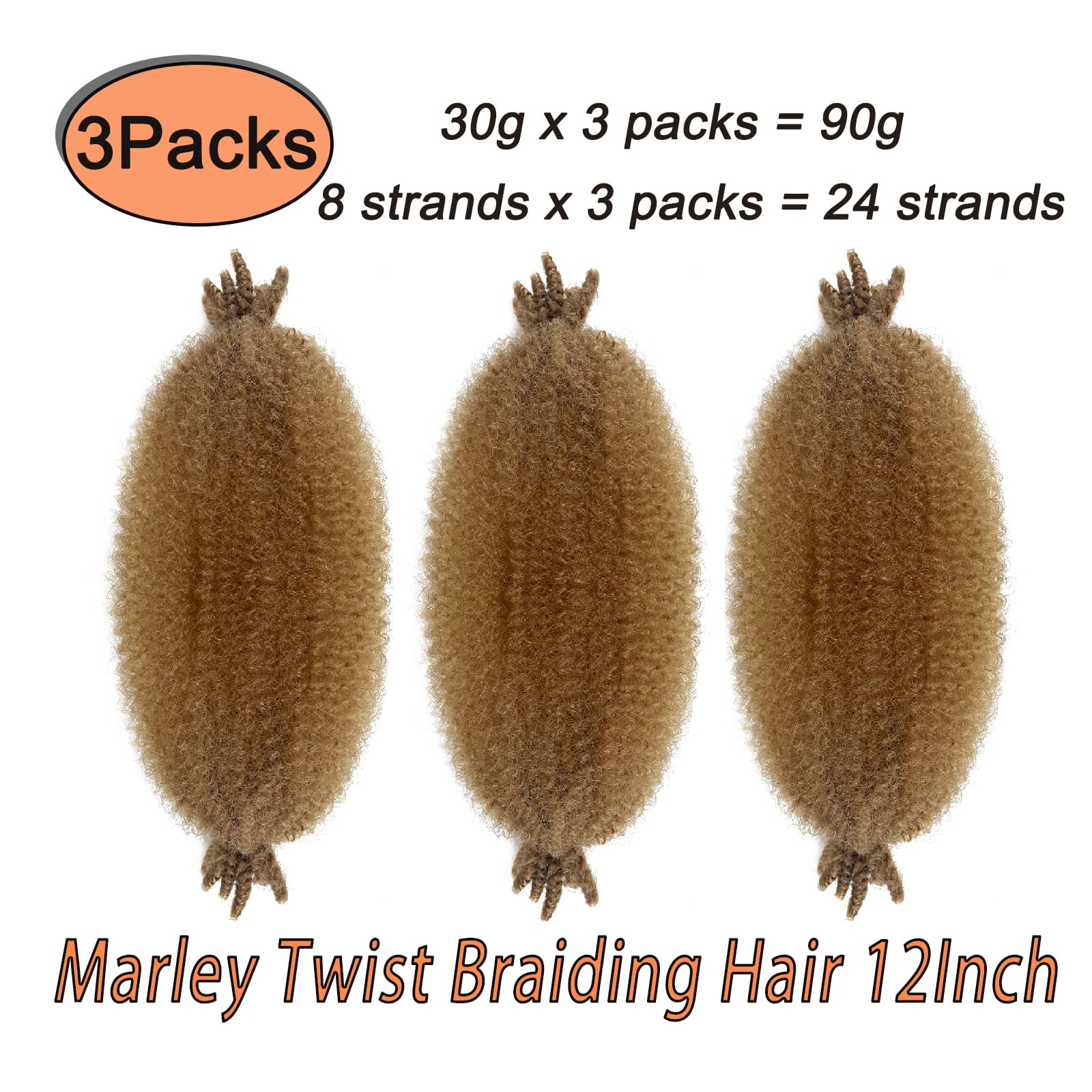 Marley Twist Braiding Hair 12 Inch Afro Twist Hair for Faux Locs Kinky Twist Hair Crochet Hair for Women Springy Afro Twist Hair Pre Stretched Braiding Hair Cuban Twist Hair (12 Inch (Pack of 3), 27#)