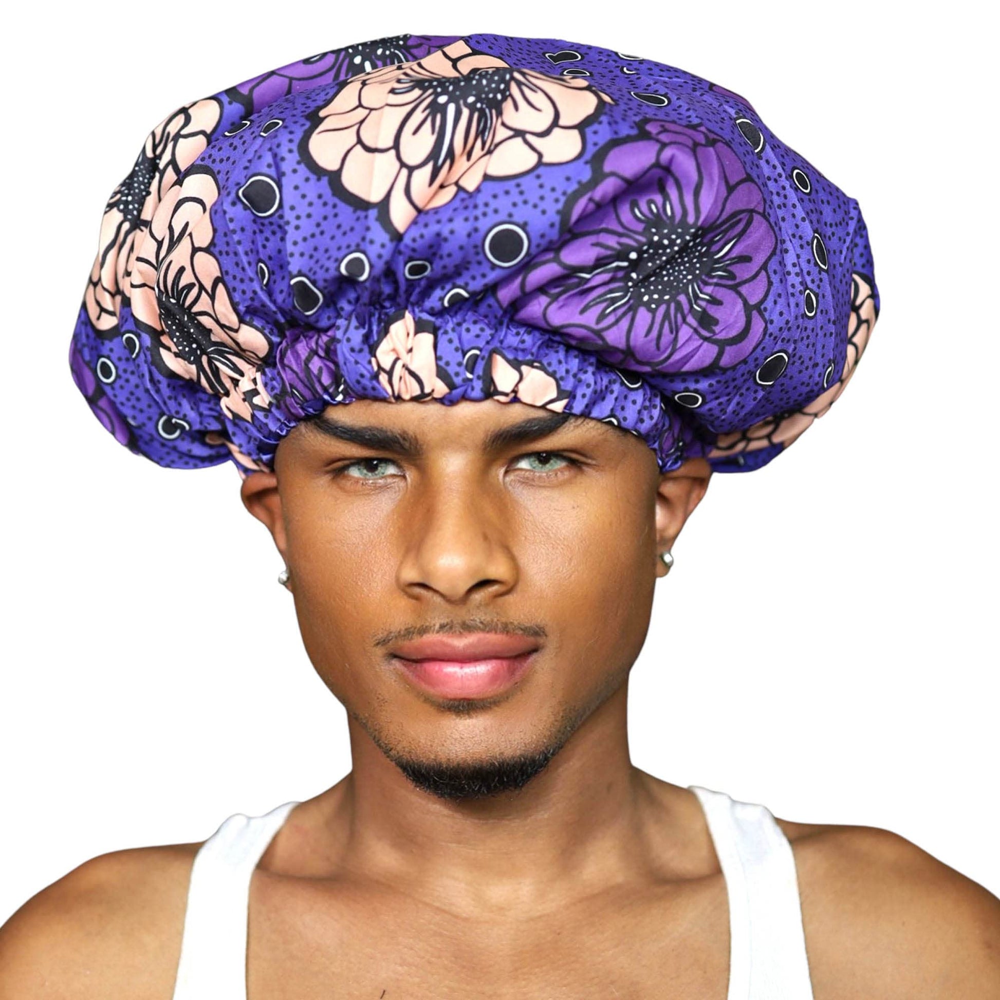 Melanin Crown Silk Hair Wrap for Sleeping â Premium Satin Hair Bonnet for Sleeping â Universal Fit Bonnet for Curly Hair Protects Against Breakage â Beautiful Colorful Designs Satin Sleep Cap Purple