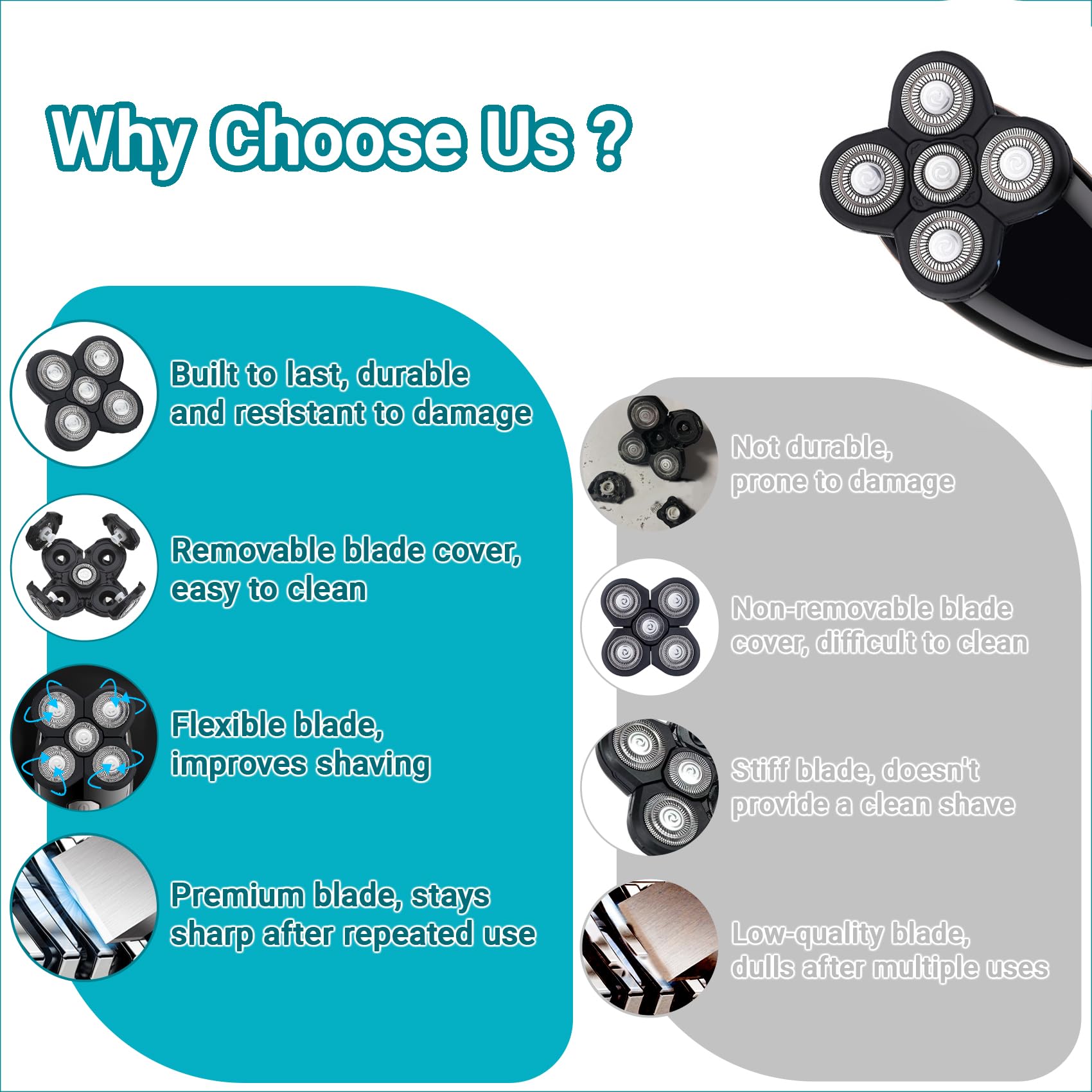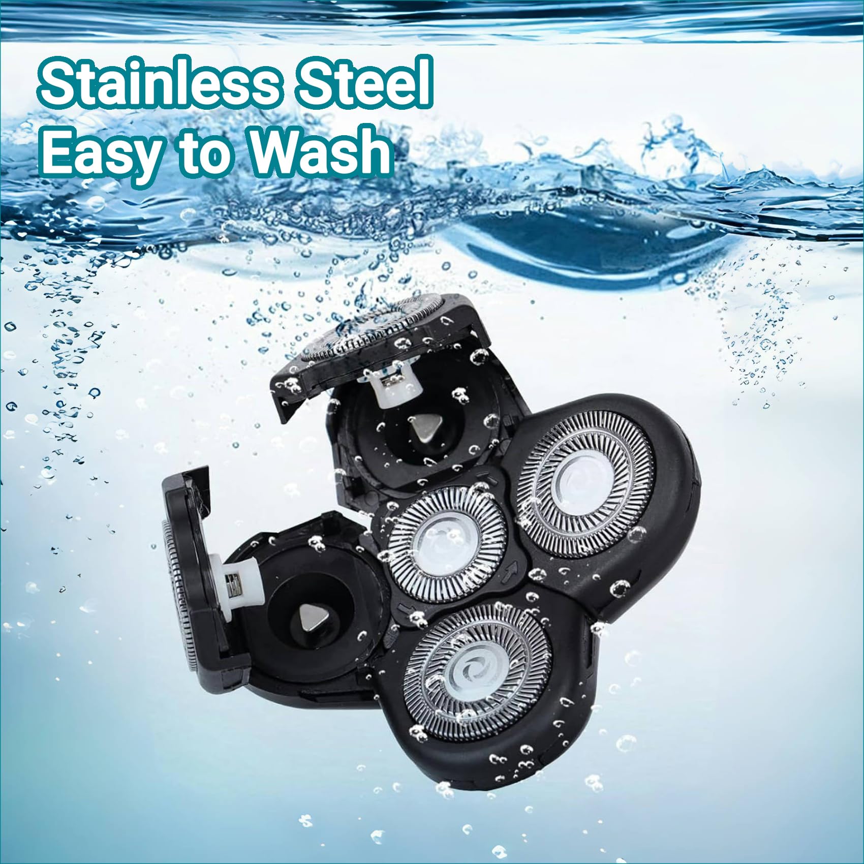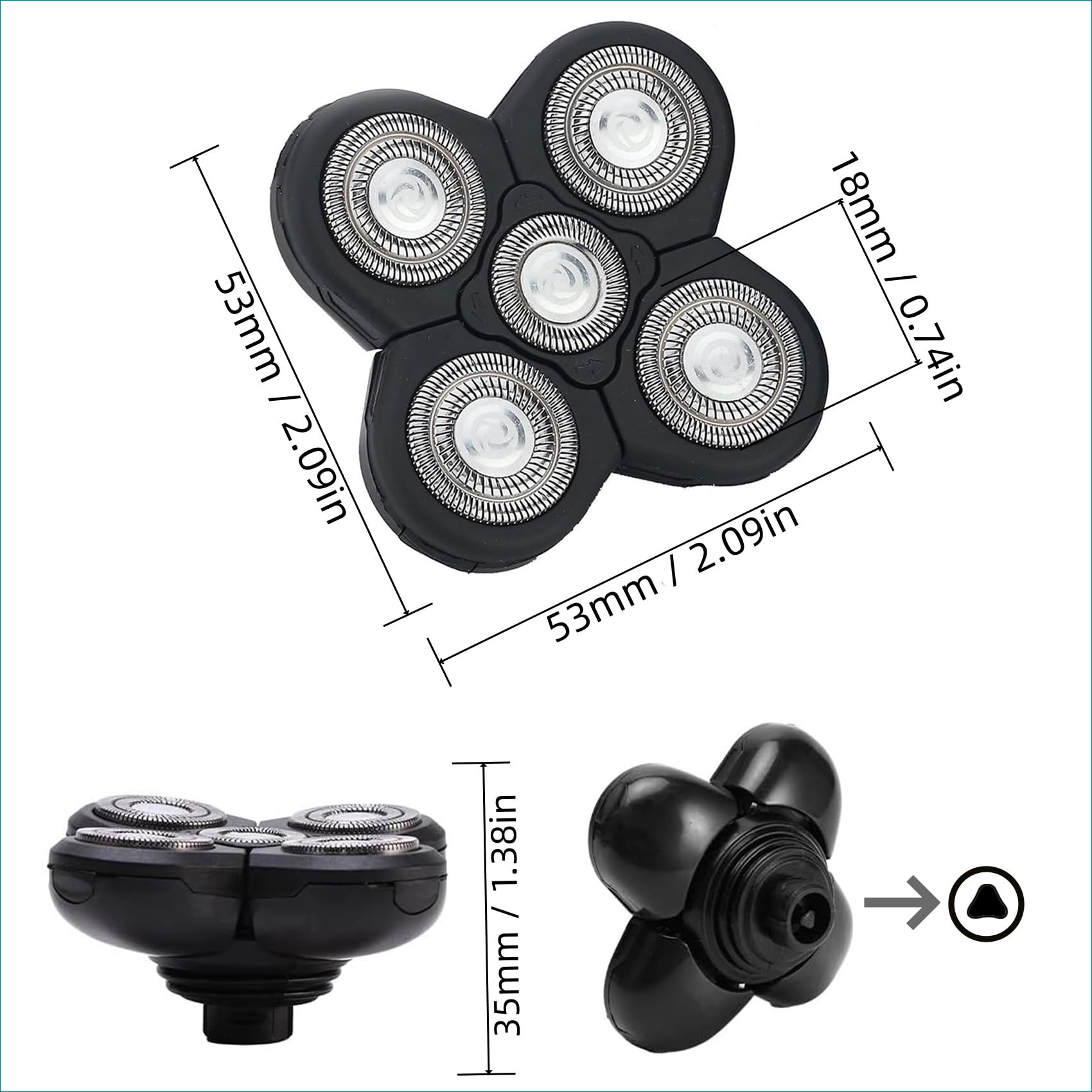 Men 5 Blade Rotary Razor 5D Replacement Head, Alternate Floating Washable Electric Shavers Trimmer Electric Shaving Head (Black-2Pcs)