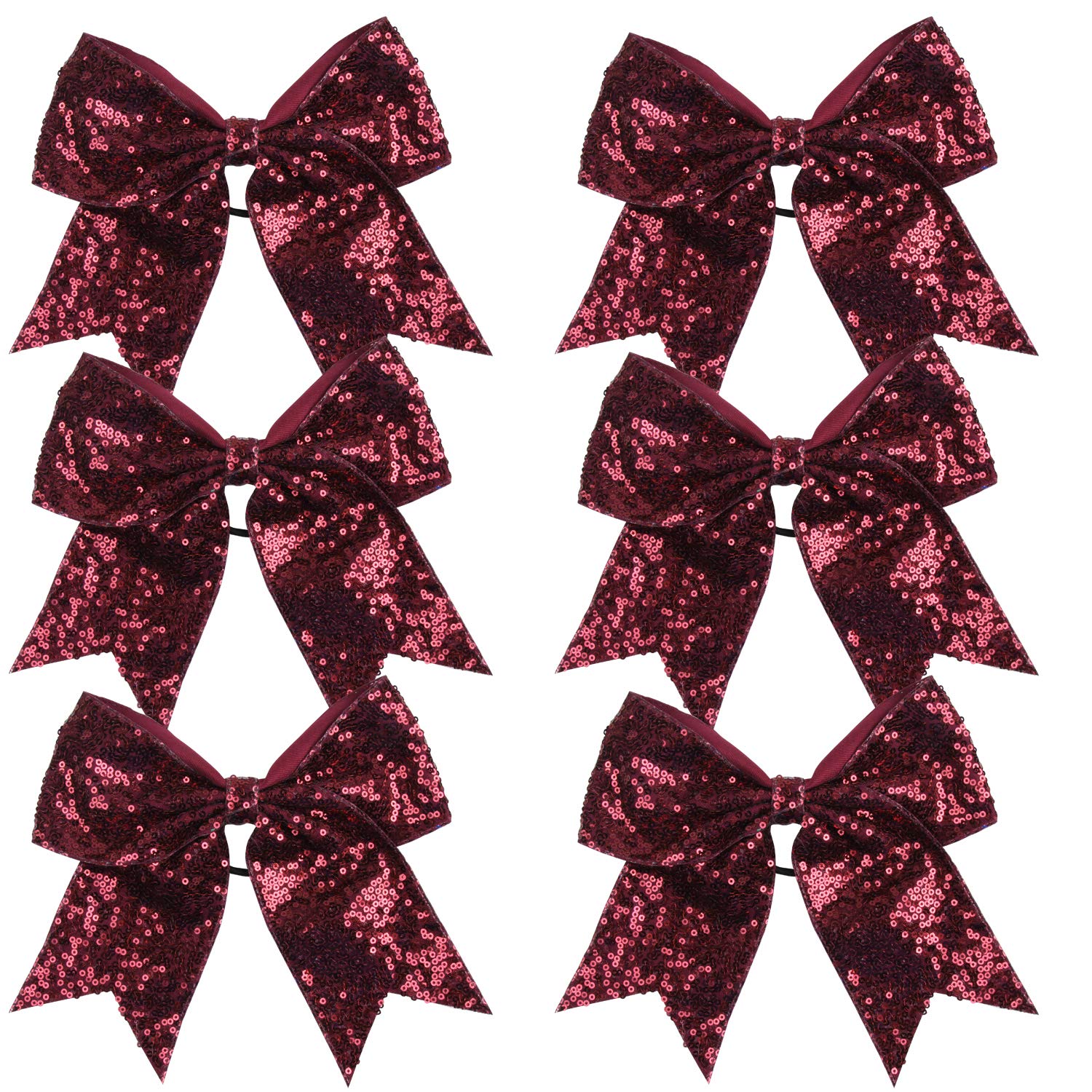 Metallic Sequin and Holographic 8 Inch Cheer Bow Cheerleader Cheerleading Jumbo Cheer Bow Hair Tie(Maroon Sequin)