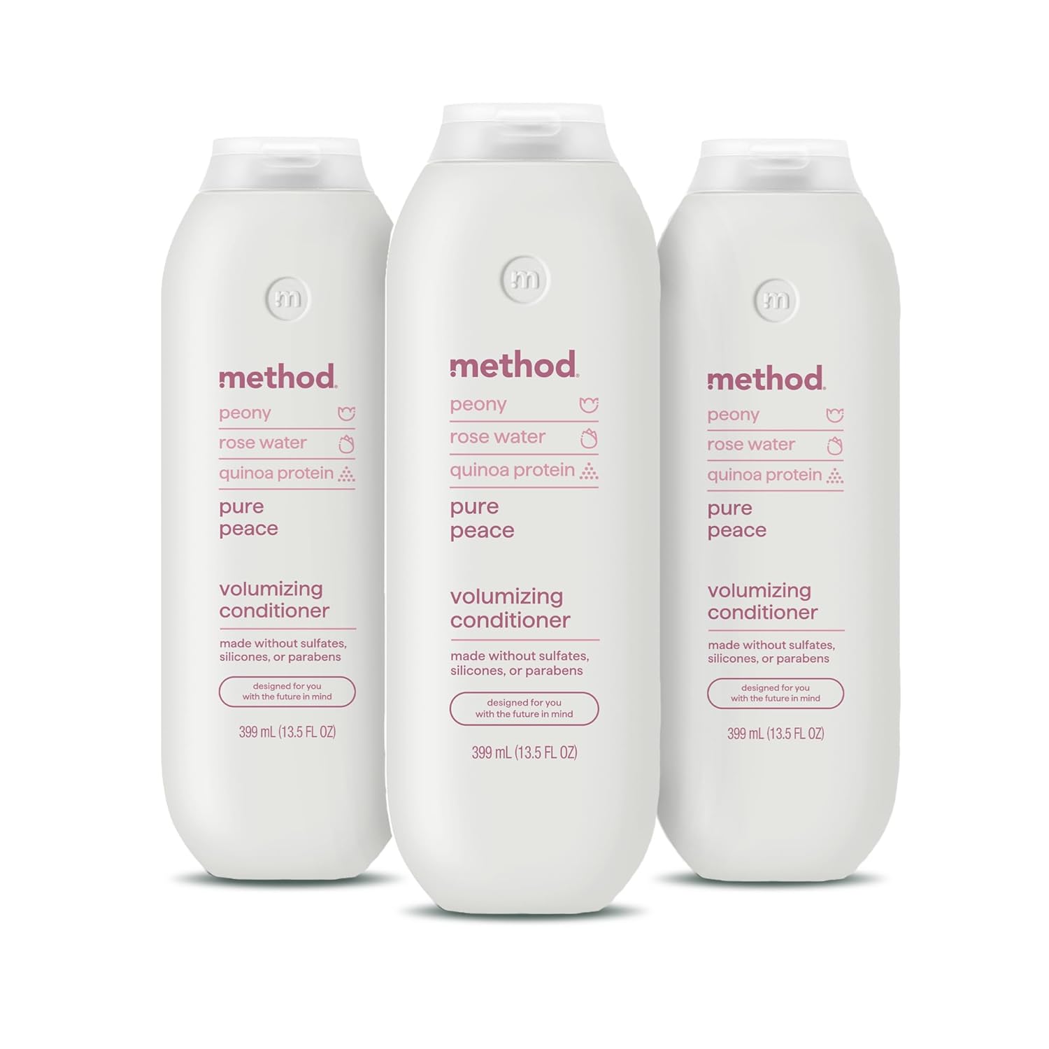 Method Volumizing Shampoo, Pure Peace with Rose, Peony, and Pink Sea Salt Scent Notes, Paraben and Sulfate Free, 14 oz (Pack of 3)