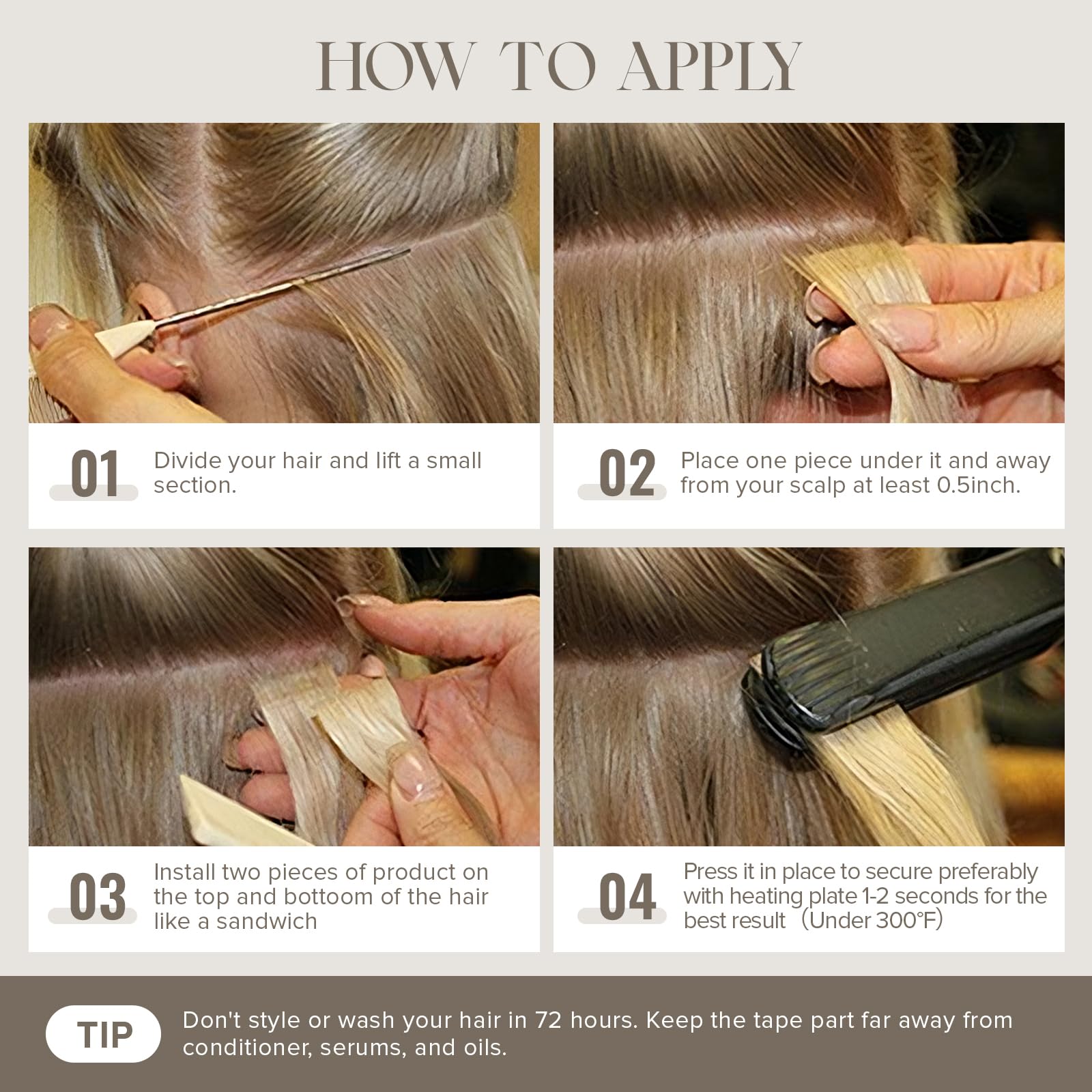 - EASY TO WEAR: Tape hair extension is a quick and easy way to apply hair extensions; Tape in hair extensions real human hair are natural looking and last 4-6 weeks without damaging the hair; Mifes hair provides extra replacement tape; Tape is stronger when heated moderately, please keep the temperature below 300 degrees fahrenheit