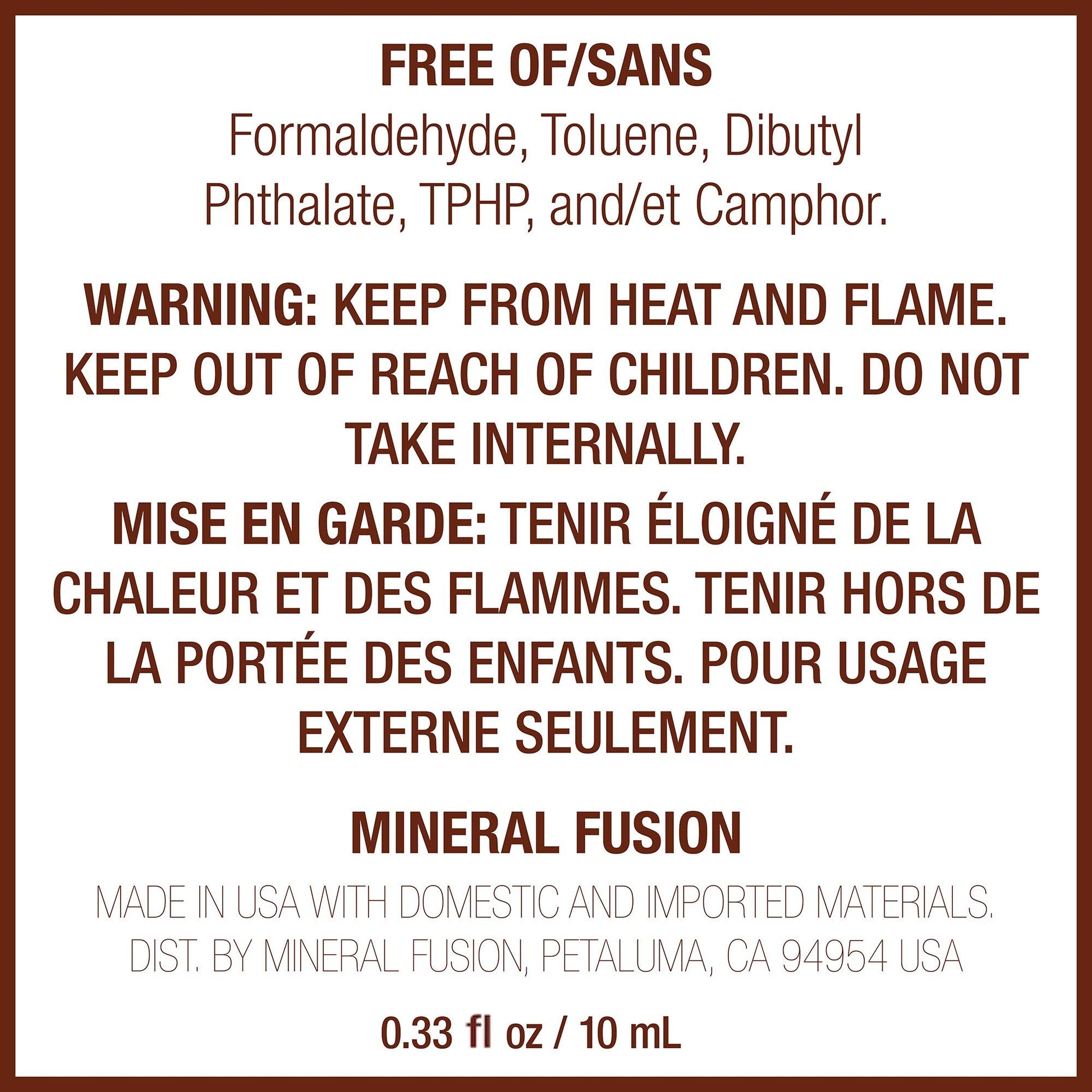 - Vivid Color, Flawless Application: Mineral Fusion nail polishes offer vivid, long-lasting color in a Formaldehyde-free, Toluene-free, Camphor-free, DBP-free formula you can feel good about.