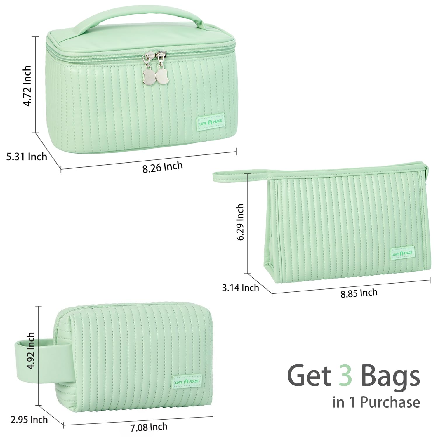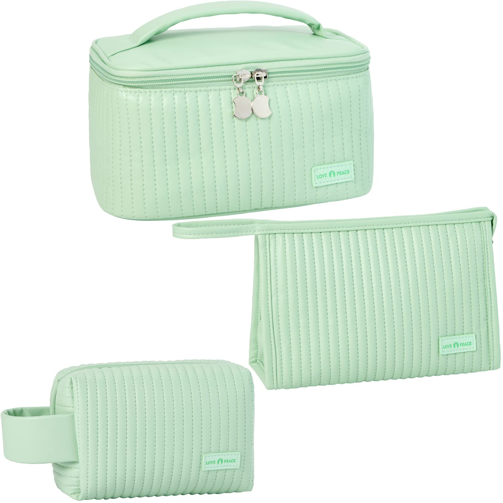 - Fashionable Design-- Green: MIRASON makeup bag set of 3 with fashionable and eye-catching colors. Comes in three different sizes and shapes (large, medium,small).